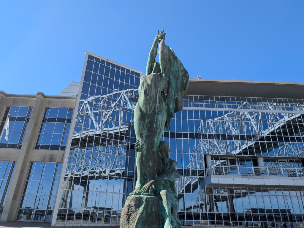 Mother River statue in front of the Port of New Orleans