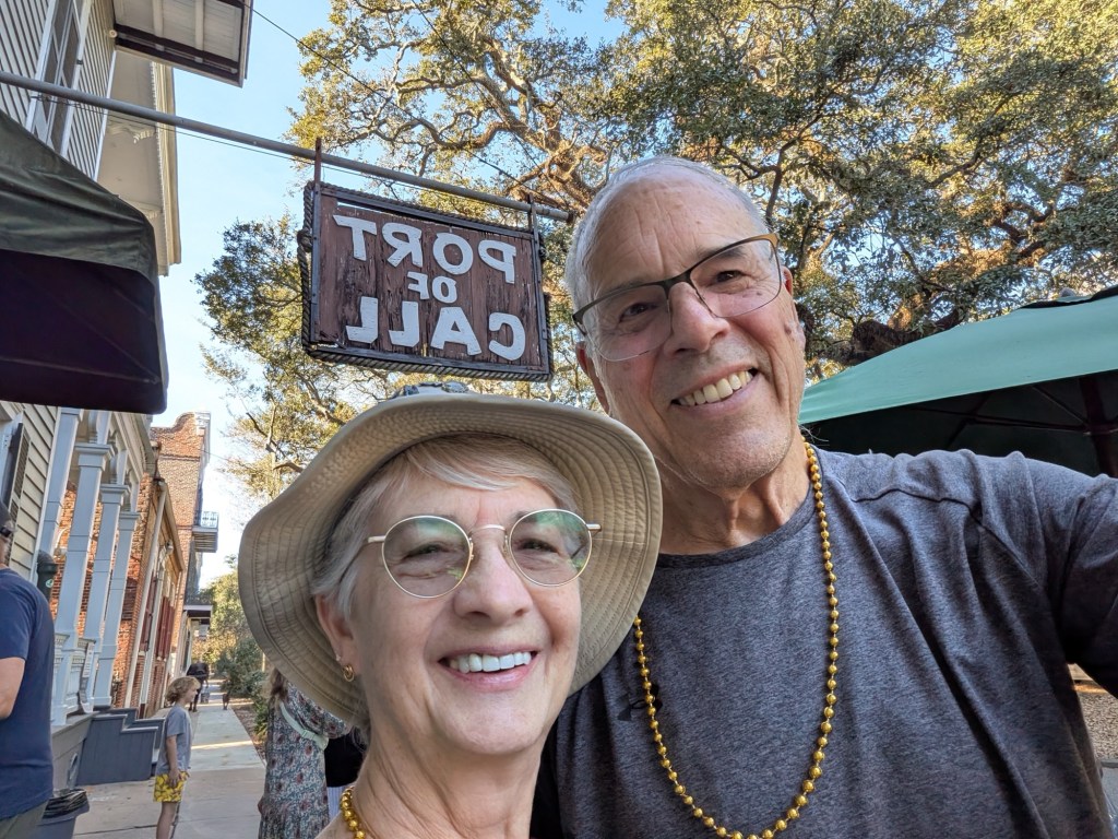On friend Tom’s suggestion, we stopped in at Port of Call for a hamburger and baked potato lunch. We thought we could avoid the crowds by showing up at 3pm, but still had to wait half an hour for a seat. They make a signature rum drink called The Monsoon, and we enjoyed watching people trying to walk after finishing one!