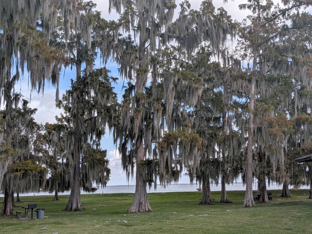 Dec 3 – Our last day in Louisiana is in Covington. Why? Because Covington completes our circle and gets us back near New Orleans. It also puts us in position to cross Lake Ponchartrain on the world’s longest continuous bridge for cars over water – 25 miles. (It used to just be the world’s longest bridge, but newer bridges in China necessitated the addition of some qualifiers.)