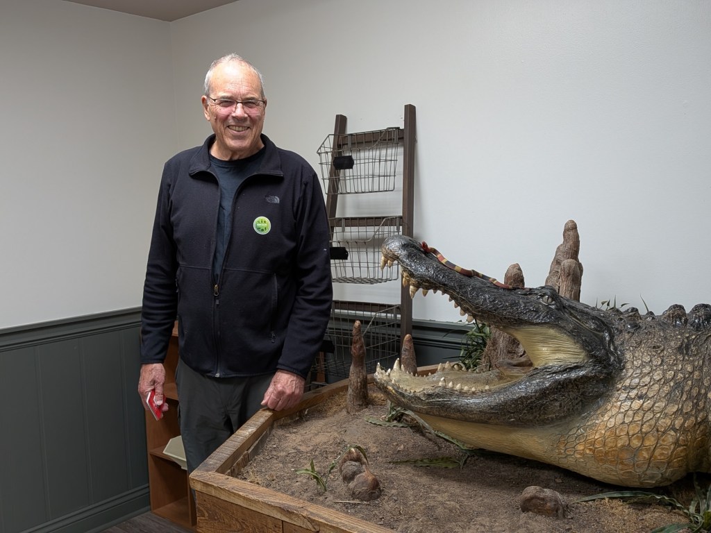 Here’s a big alligator that menaced the McIllhenny family, back in the day. As the weather has turned chilly, I’m afraid it is the only gator we will see on this trip.