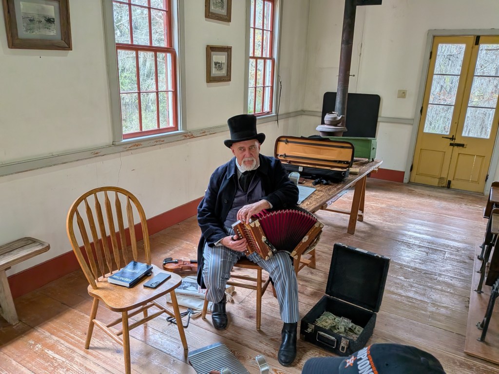 Several of the houses contained folksy re-enactors with stories to tell. This gentleman in the schoolhouse told how children were punished for speaking their native French dialects