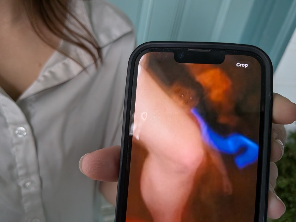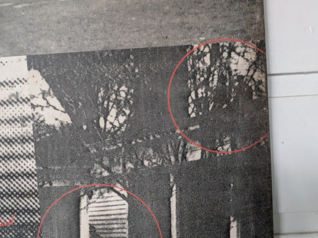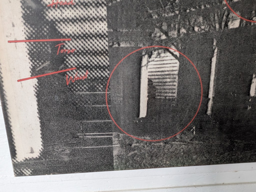This is a photo of the outside of the house, showing a ghostly figure…