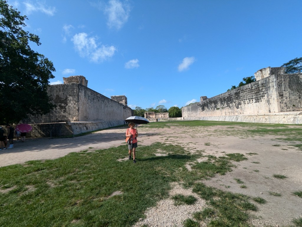 Aug 19 – This morning we got up early to catch a collectivo to visit the ruins of the Mayan city Chichen Itza. We arrived at the collectivo stop a little after 7, knowing that the 15 passenger van wouldn’t leave until it was full. Thankfully, this collectivo had air conditioning – an unexpected bonus!