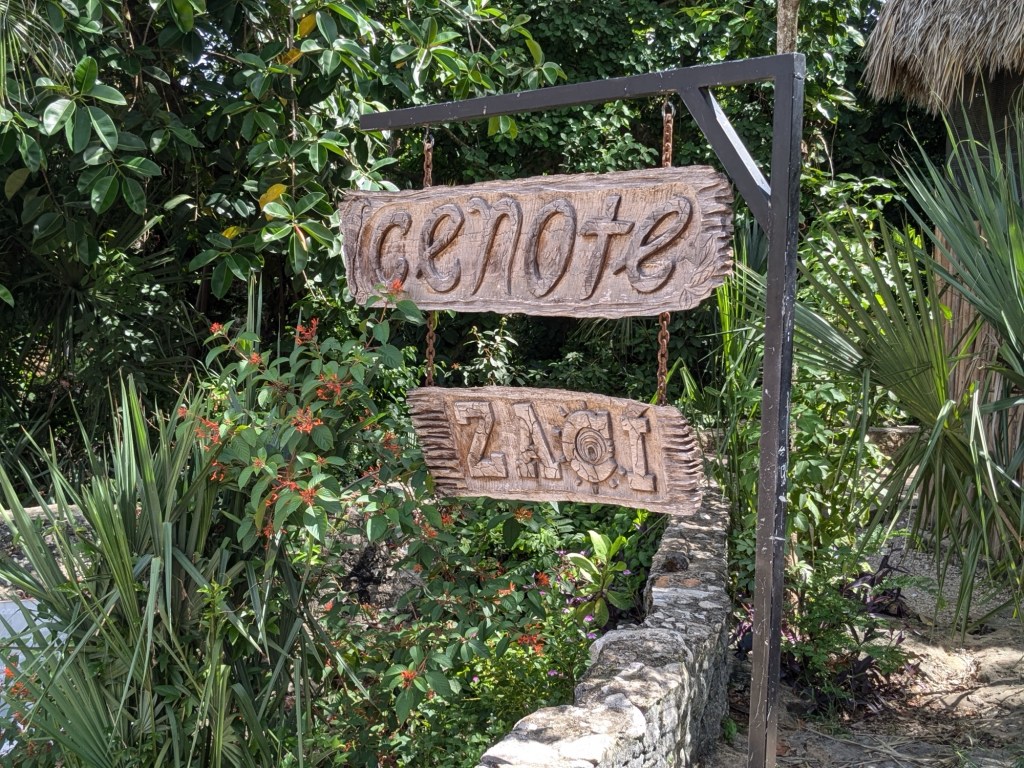 Google told us the Cenote would open at 9am. Having been in the Yucatán a while, we know not to set your watch by the times promised here. We arrived around 9:30, figuring we’d beat the afternoon crowds (when it is REALLY hot). The Cenote was not open, but the man said it would open at 10. We waited with the other tourists, striking up a conversation with a nice young couple from France.