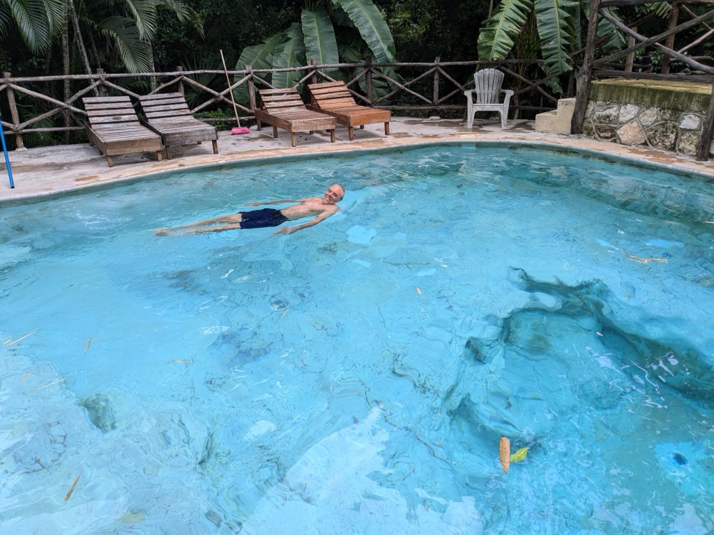 Sept 1 – Do you remember when we were in Valladolid and tried unsuccessfully to swim in a cenote? Well, today we will get another chance! Although there are no cenotes in Izamal, our hotel host Monty arranged a taxi that will take us to a cenote about a half hour away.