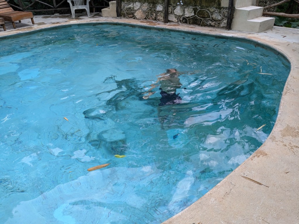 We are staying at a little hotel called Kinich Ahau, named for the Mayan sun god, and run by Anna. Our room faces the pool, and Anna will cook our breakfasts.