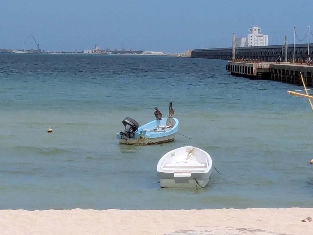 Progreso is about 75 miles east of our last beach town of Celestún, still on the Gulf of Mexico. Another fishing village with calm green waters and a beautiful, sandy beach.