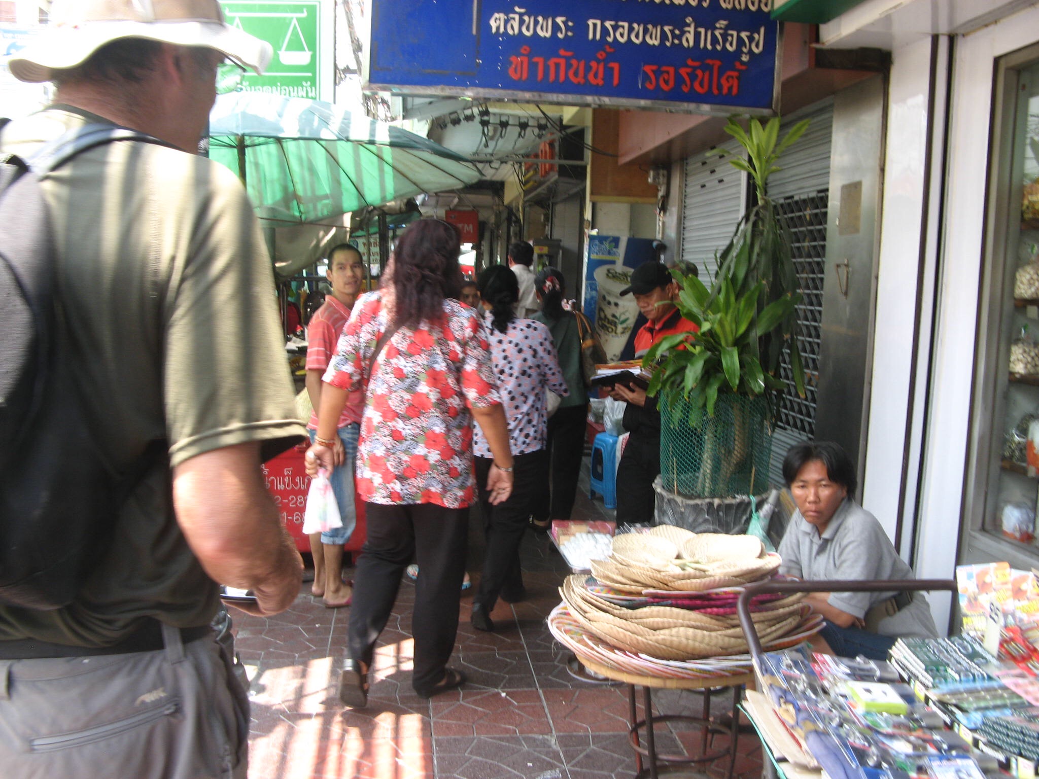 We visited the Amulet Market, where Buddhists come to purchase tokens containing images of the Buddha, famous monks, or bodhisattvas. Some are as small as a dime, and some are full size statues, carved, cast, painted or photographed. Vendors line several streets offering their wares, and men with magnifying glasses pore over bins full of small amulets, looking for one that may be an antique, rare, or worth lots of money. I guess this is the Thai equivalent of stamp collecting.