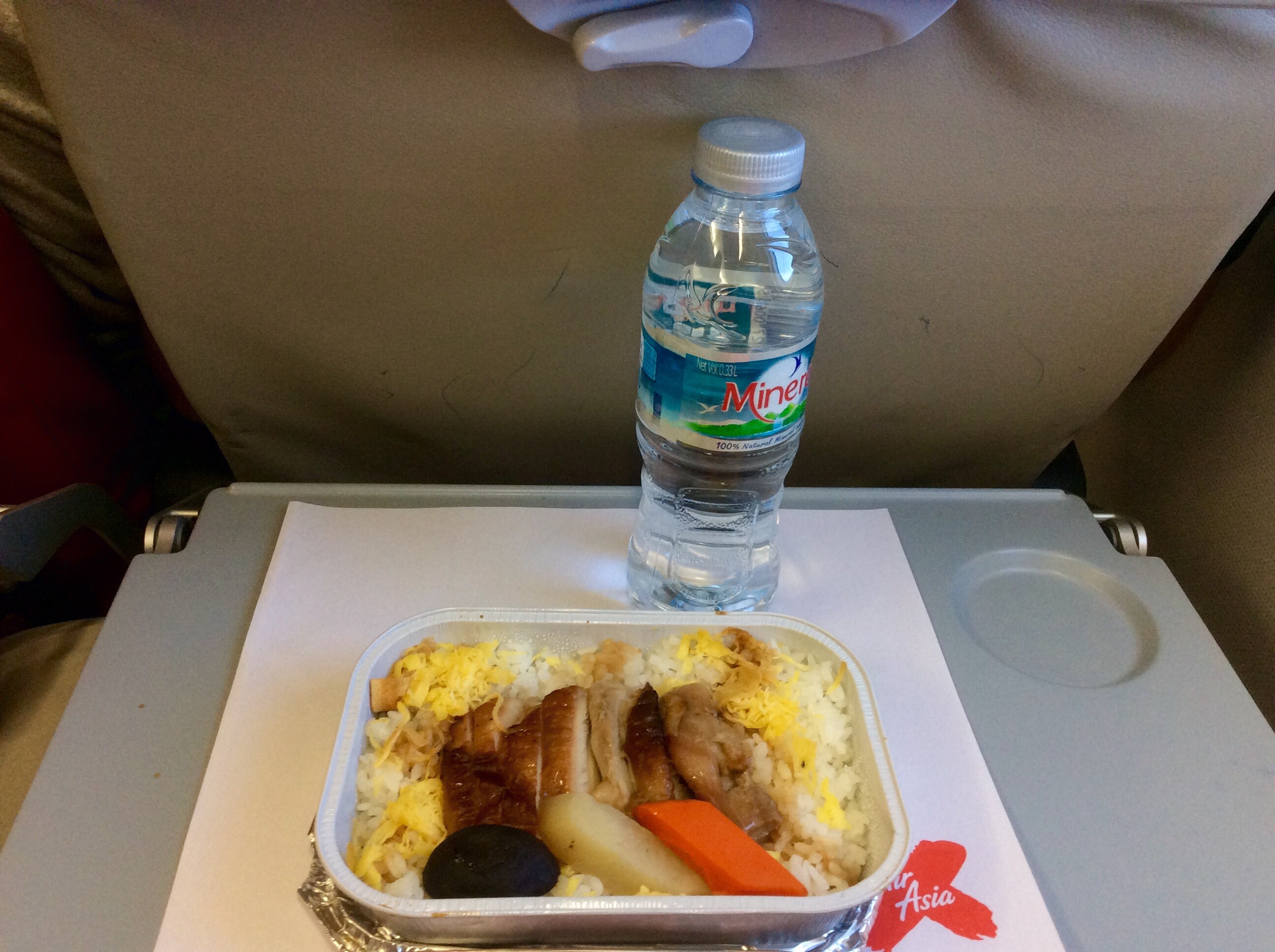 After our wonderful experience with Bangkok Air, I had an expectation that we would be given a meal on our 5 hour Air Asia flight – no such luck. We had to purchase our entree (the size of a cell phone) and water, accepting what was left when the meals we wanted were sold out. No movie, no nothing. image Chicken with one carrot and one potato.