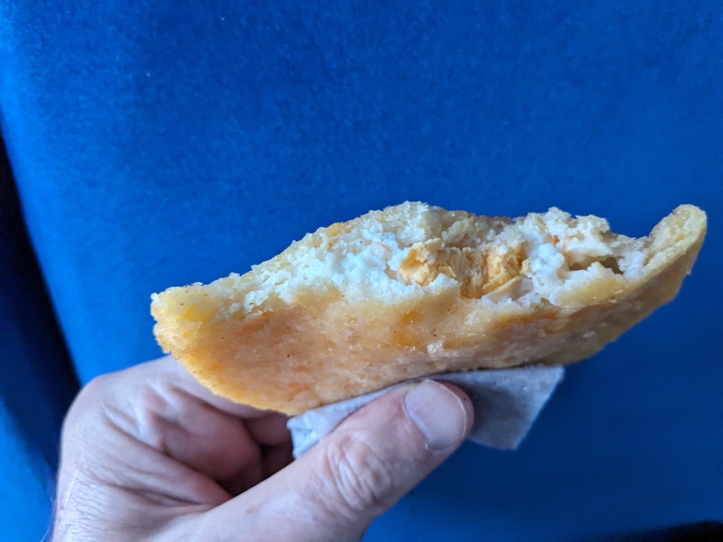 The third one had us stumped, and Google was no help based on the outside. Was it a pear? A potato? Nothing to do but cut it open. Aha! Once we saw the inside, we immediately knew by color and aroma that we had a strawberry guava! It had lots of hard little seeds, but that didn’t stop us from gobbling it down.