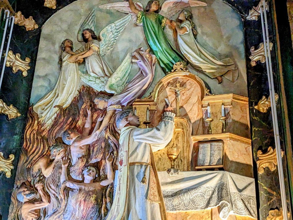 Iglesia de la Merced, Church of Mercy, had lots of life-sized statues.