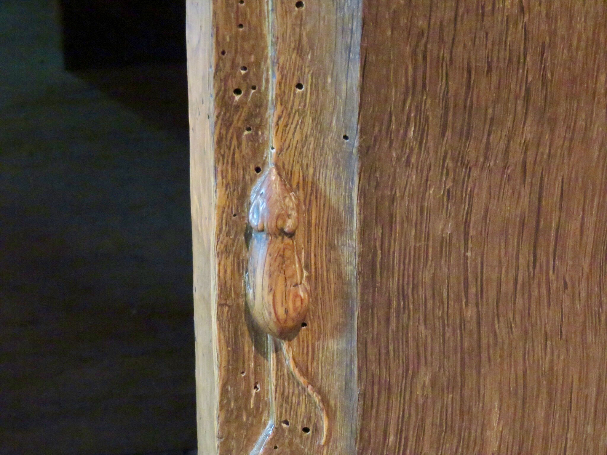 Here’s the close-up – tiny mice carved into the front of the pews!