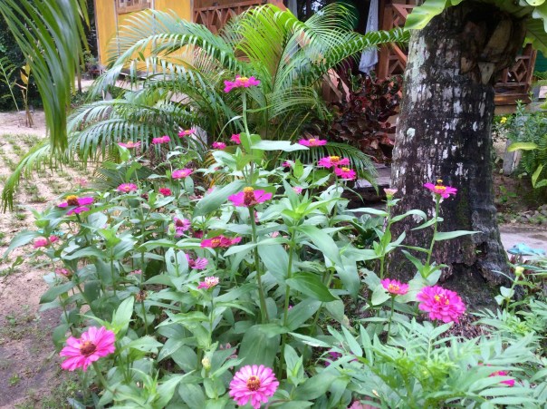 We stopped to have lunch at a roadside stand on the road to the resort- barbecued chicken wings, sticky rice and spicy shredded papaya salad. The road doesn’t get any traffic except from the workers on their way to and from the resort. The proprietor had no English, but we let her know the food was delicious!