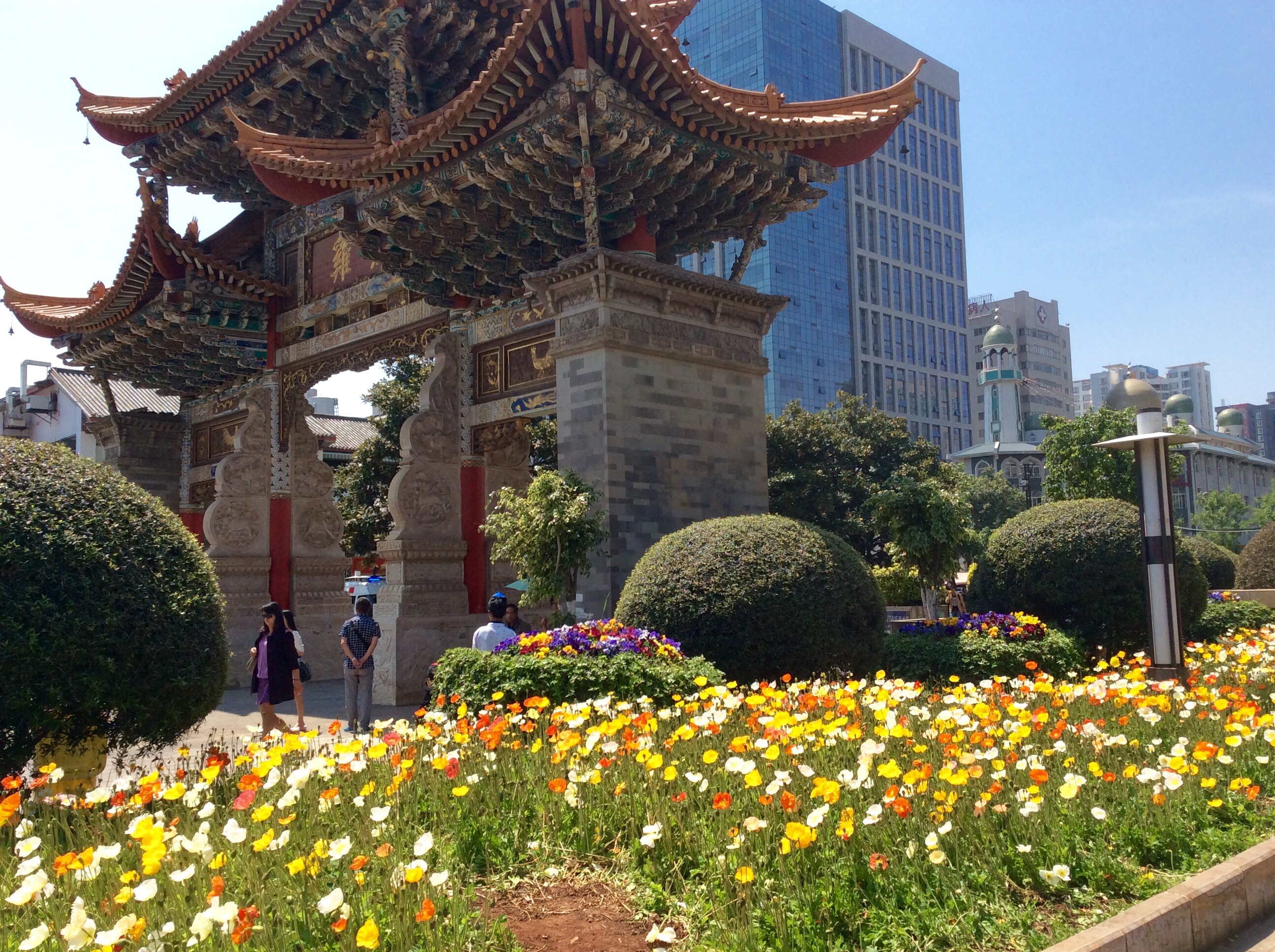 Jim booked us at a new hotel in the center of the city, which does not appear on any of our maps. The only clue I have is that one of the exterior pictures of the hotel on the Booking.com website shows a large golden statue of Jesus. Can’t be too many of those in the middle of Kunming! Sure enough, we spot the statue, and identify the tall building that must contain our hotel. It is an insurance company building, in the middle of a construction zone, but we know our hotel is on the 8th floor. We’re getting pretty good at sleuthing our way around without being able to read the language.