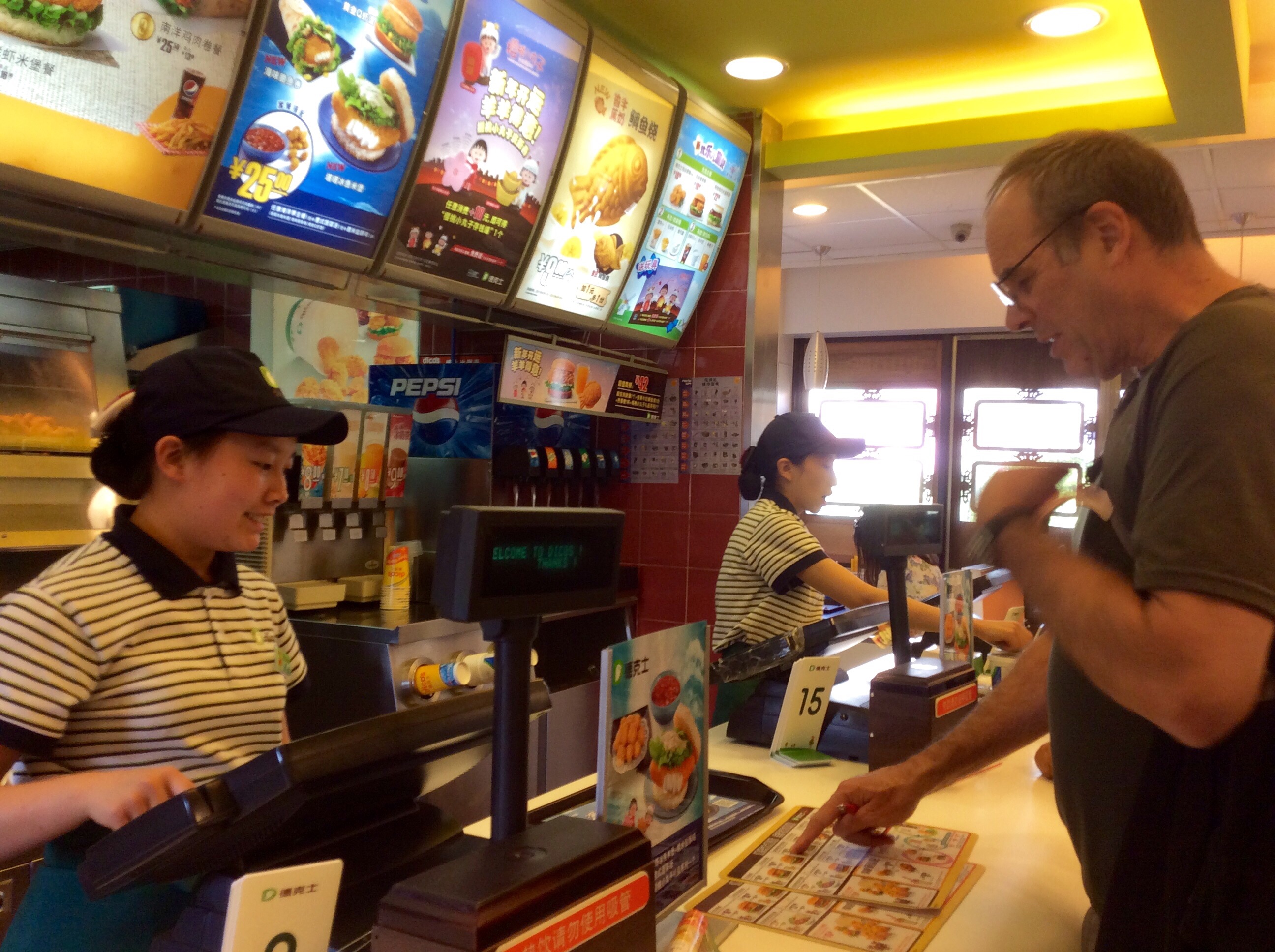 We has supper at a nearby eatery that provided a delicious full meal including soup, tea, two vegetables, a meat entree and rice for 15 yuan ($2.42). The proprietor came over after observing me eating with my chopsticks in my left hand, and tried to get me to take a new pair of chopsticks with my right hand. I thanked her, but was puzzled. I wonder if I am offending by using my left hand – I know I would be in India, but this is the first time I’ve been approached here. She could see the sling on my right arm – this was one of the many times a bit more knowledge of the language would have helped!