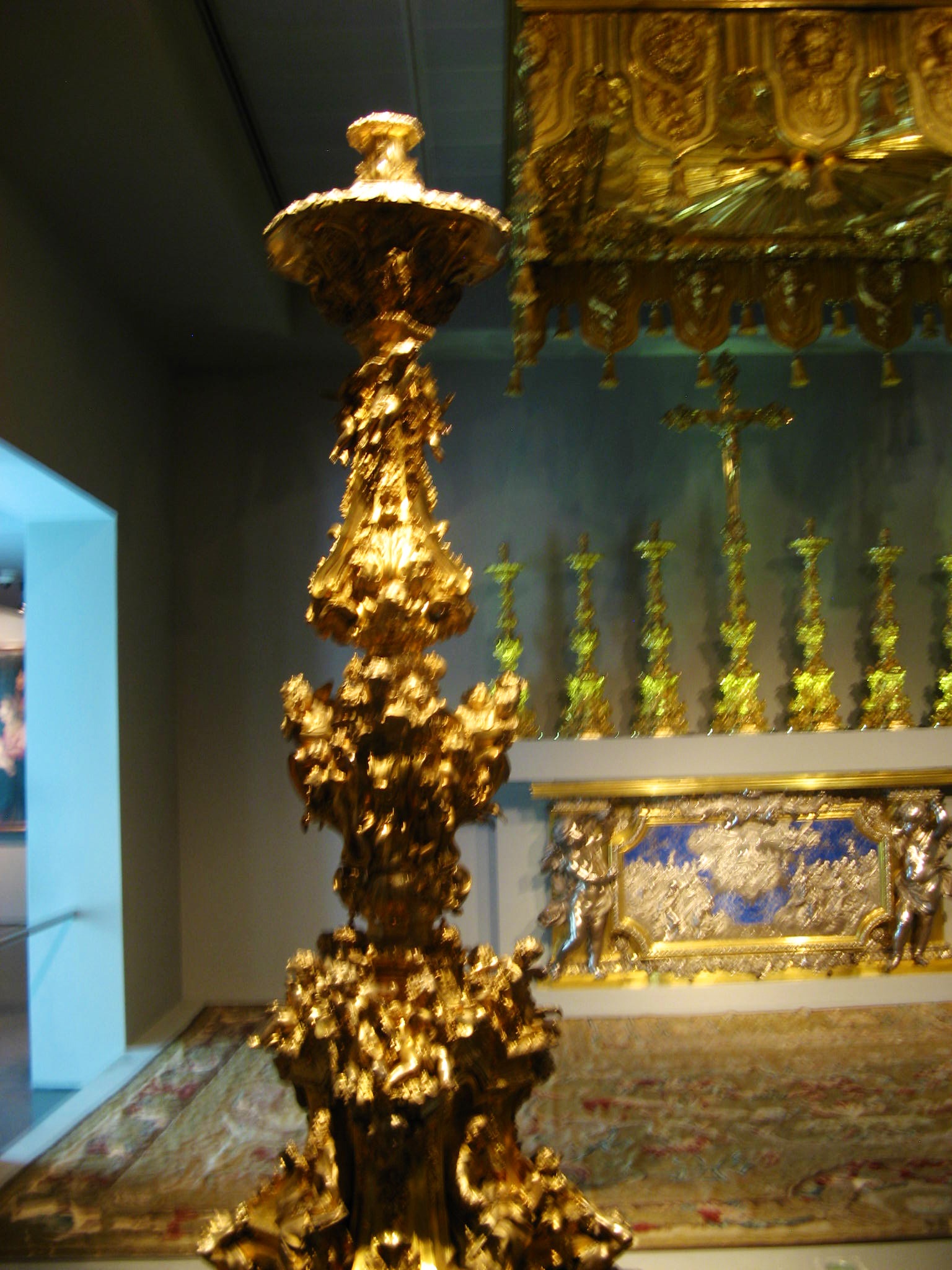 8/24 – we are in Lisbon for one more day. What should we see? Not too far away is the Igreja Sao Roque, or the Church of Saint Rocco. This is the oldest Jesuit church in Portugal, and perhaps the most ornate. At the time it was being built (1700s), the Portuguese explorers were bringing more gold and jewels home from Brazil and the new world than anyone knew what to do with. Many of the riches ended up here. Here is one of the large gold candlesticks, over six feet tall: