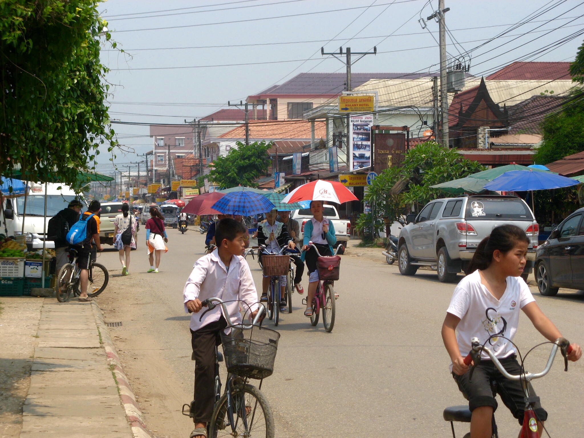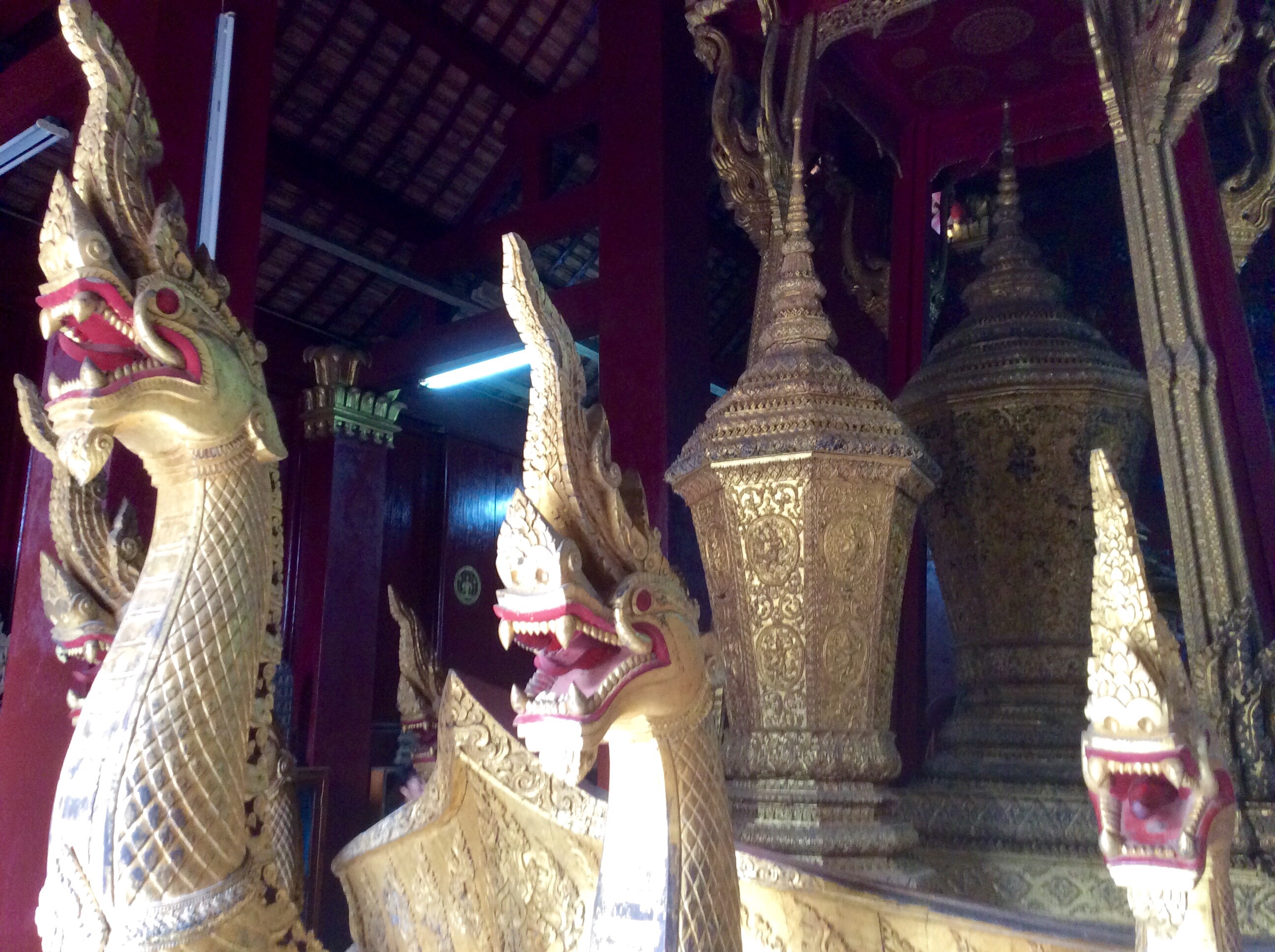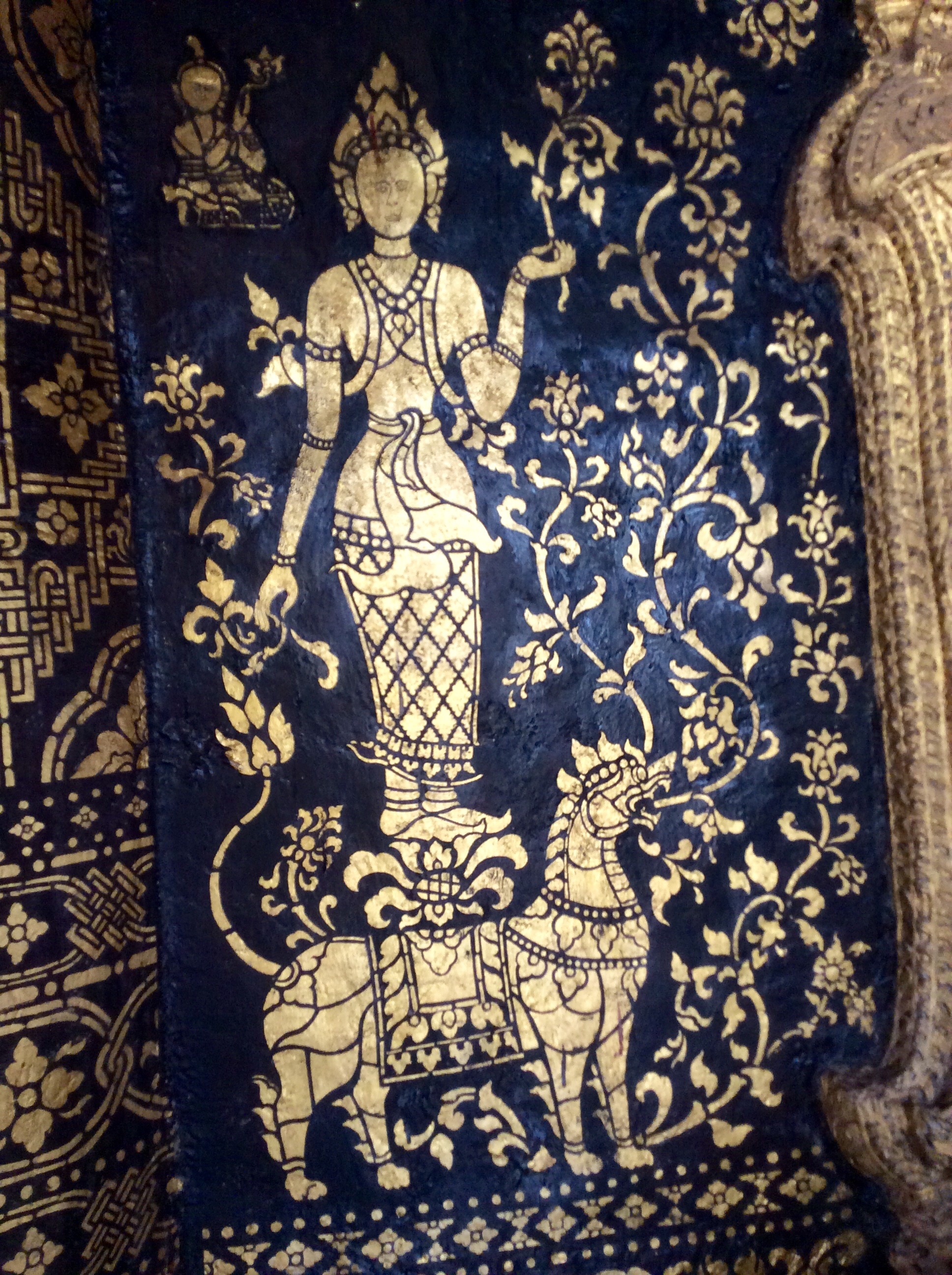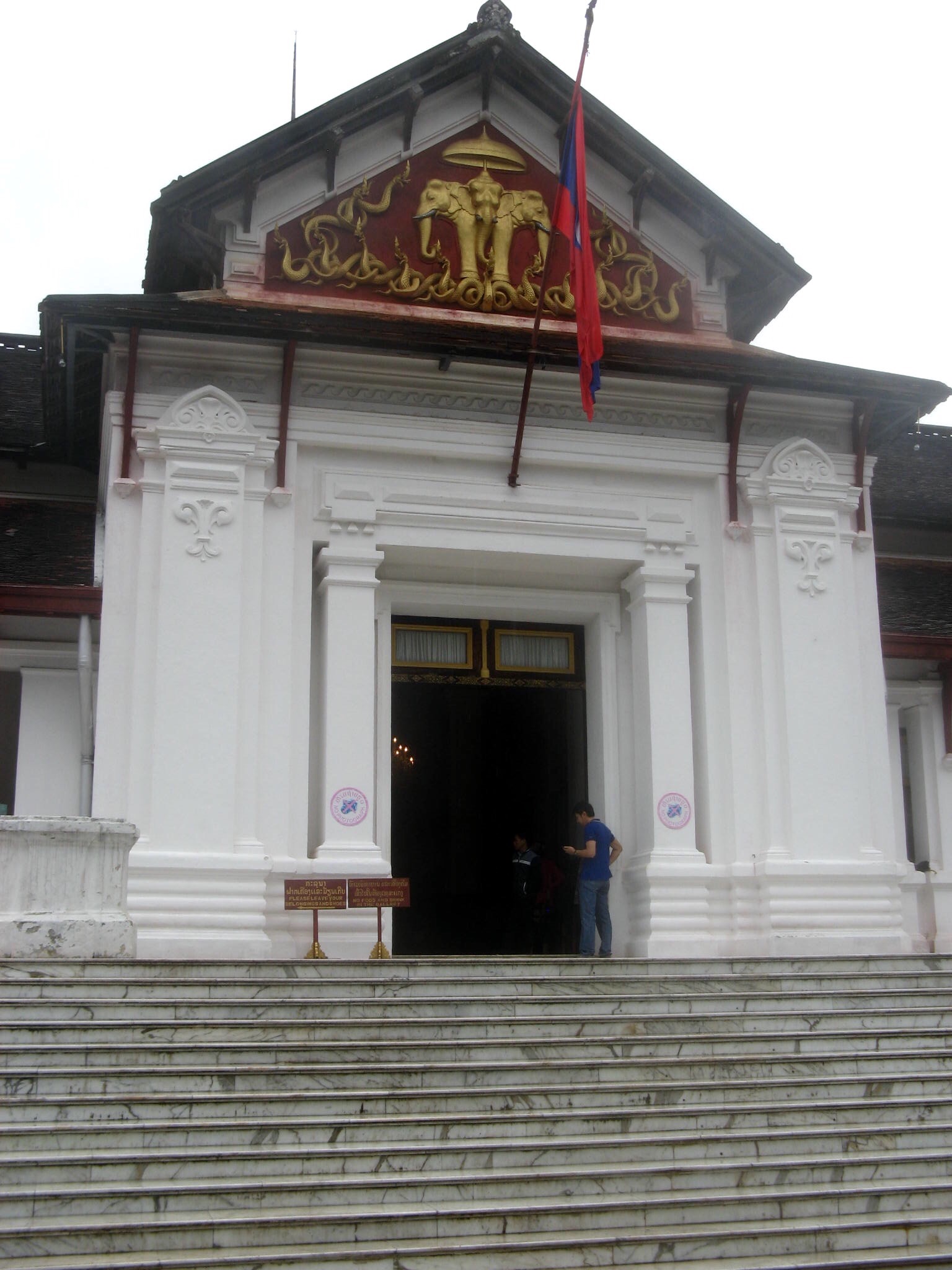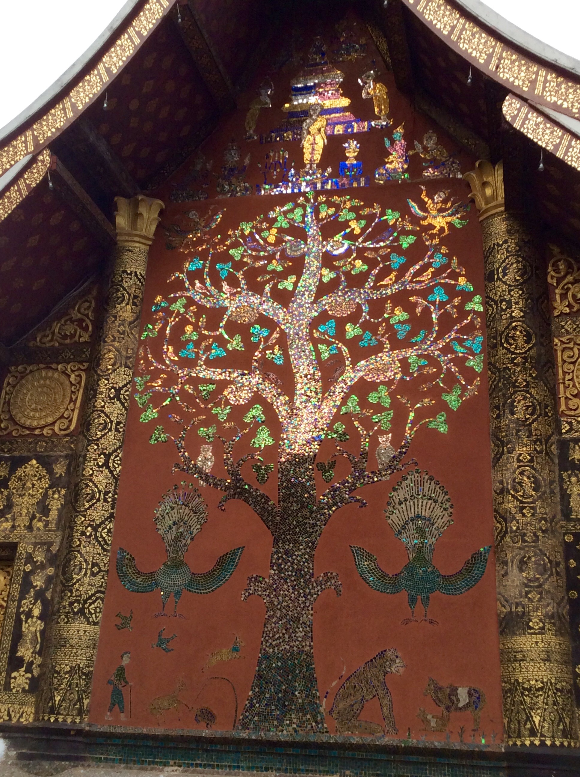 3/28 – This morning we had an early breakfast so we would be ready for our tuk-tuk at 8am. We are taking a two hour tourist slow boat up the Mekong River to visit Whiskey Village, and see the Pak Ou Buddha caves. There are seven of us (two young women from Hanoi, a Spanish man from Barcelona, and a couple in the back that we never got to speak to) in the long boat, which is motor driven, so is not really that slow. The morning is overcast and it is actually a little chilly on the water.