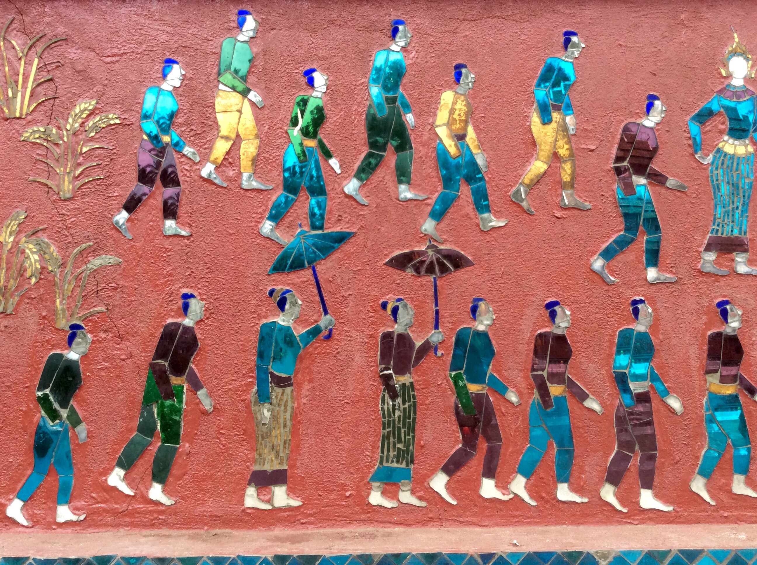 As backpackers, we normally have a “no buy” policy, but the morning is chilly and the thought of a shawl around my shoulders leads me to engage with one of the women. She allows me to take her picture, and we negotiate for a light cotton turquoise shawl, which ends up costing about $2.50.