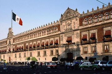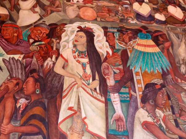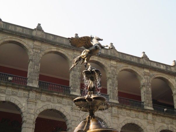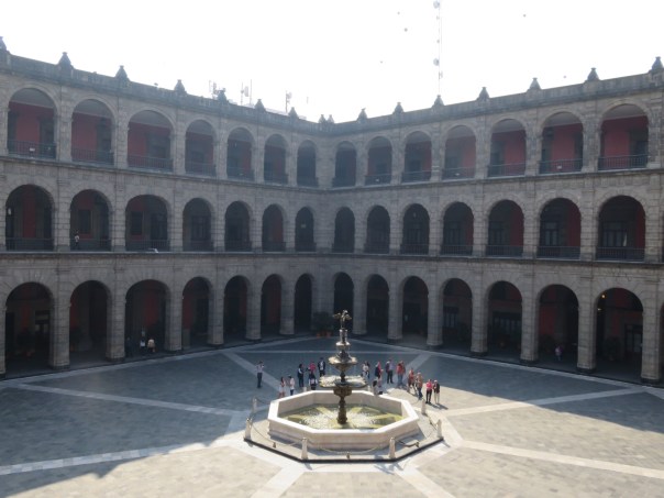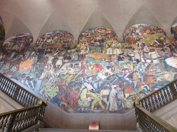 Here, the artist Diego Rivera painted huge murals all around the second story, back in the 1920s. He hoped the Mexicans would unite as Communists to make their lives better.