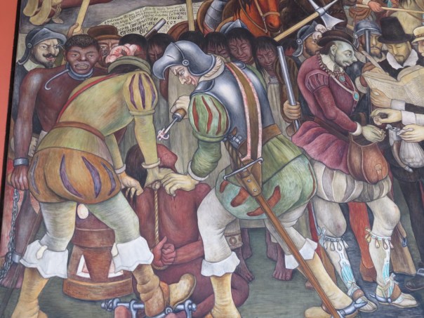 Below, the good Communists, including Rivera’s girlfriend Frida Kahlo (with the eyebrows), are taking charge and teaching the poor children to read. Thank you, tour guide. He was the only we one we encountered today who was not guiding in Spanish.