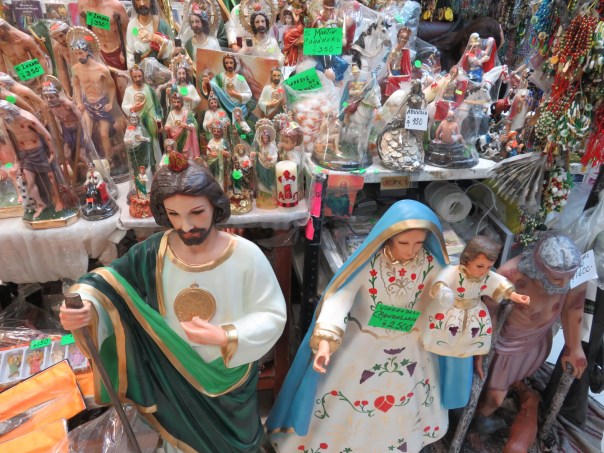 In the afternoon, we walked through several markets, which underscored just how poor this country is. We saw lots of energetic selling, but very few were buying. A peso is worth about five cents, or 20 to the dollar. We wandered into an area where small animals, birds, puppies, hens and goats were packed together cruelly, and a man, seeing our cameras, shouted at us to leave. We left.