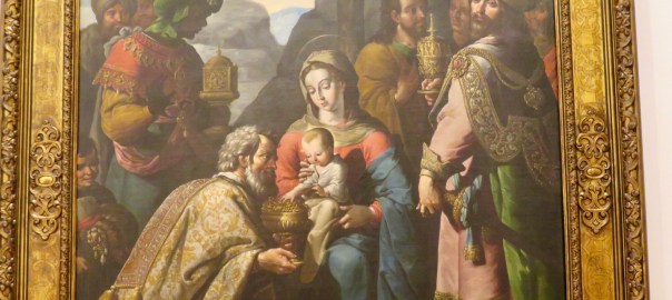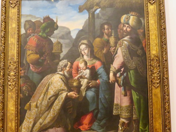 We walked through several rooms of paintings by others who were inspired by Caravaggio, and then finally to the room where his painting, The Fortune Teller, was displayed. Dozens of art students huddled around it, taking notes. It was the only Caravaggio on site, and was one of his earliest works, showing a pretty young fortune teller smiling beguilingly at a handsome young man while she takes his palm and steals his ring.