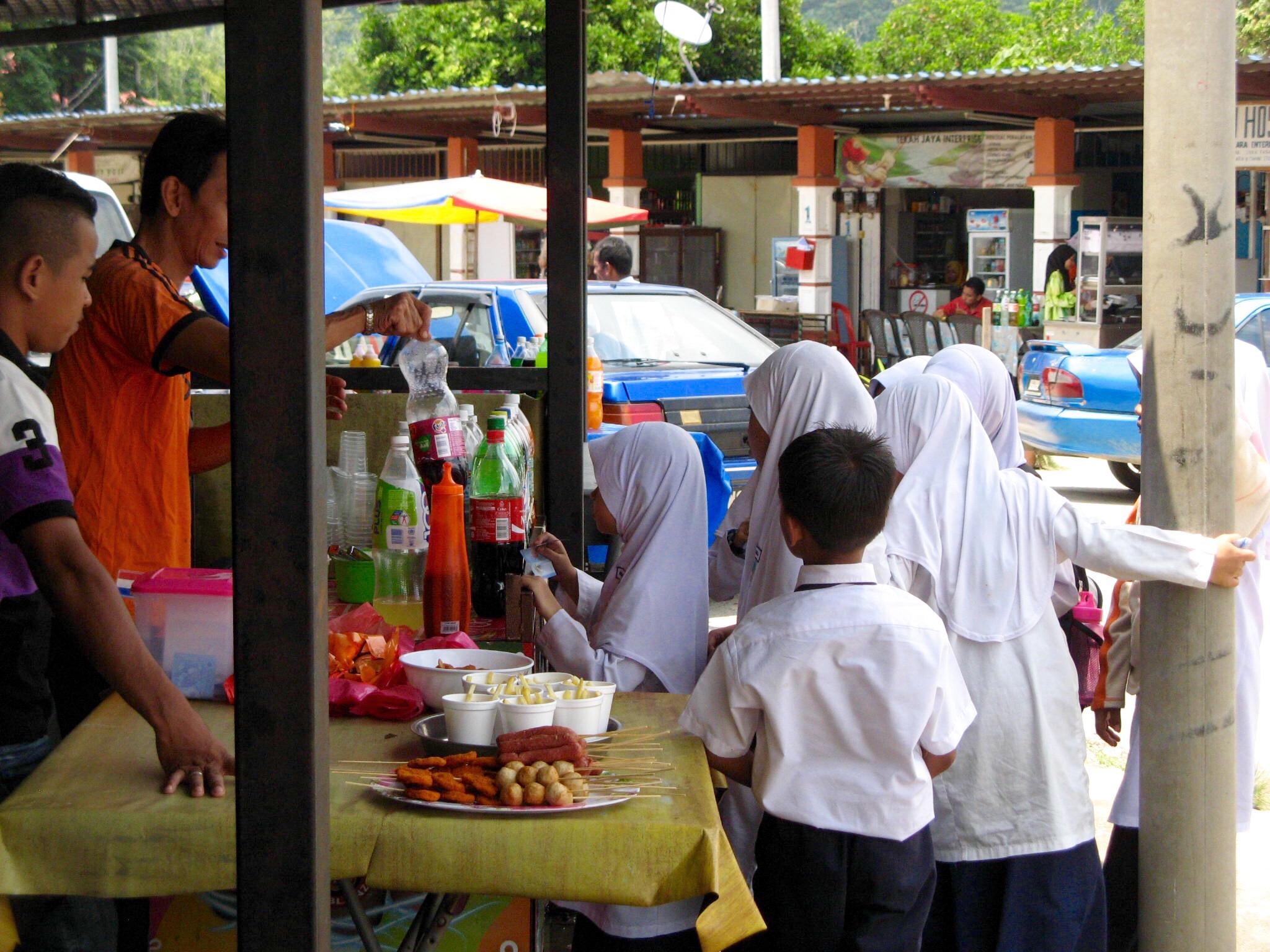 Grilled grubs are a delicacy here. Live grubs are skewered, then grilled, still wriggling.