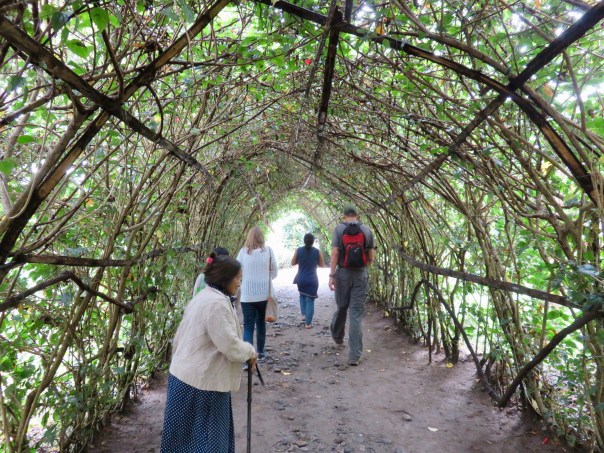 The women drummed and danced for us. Janis said the blue outfits, beads and grass skirts are a recent addition to attract tourists, but the dance is authentic, characterized by the swinging of their long hair. Grass skirts may have been used in pre-Colombian times.