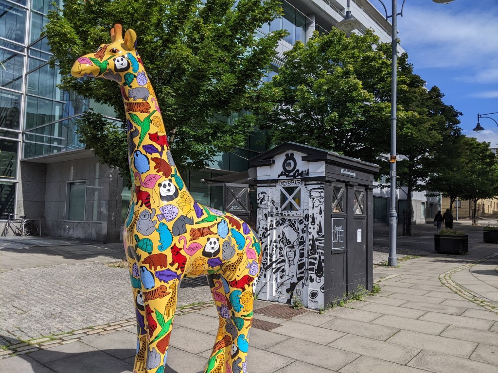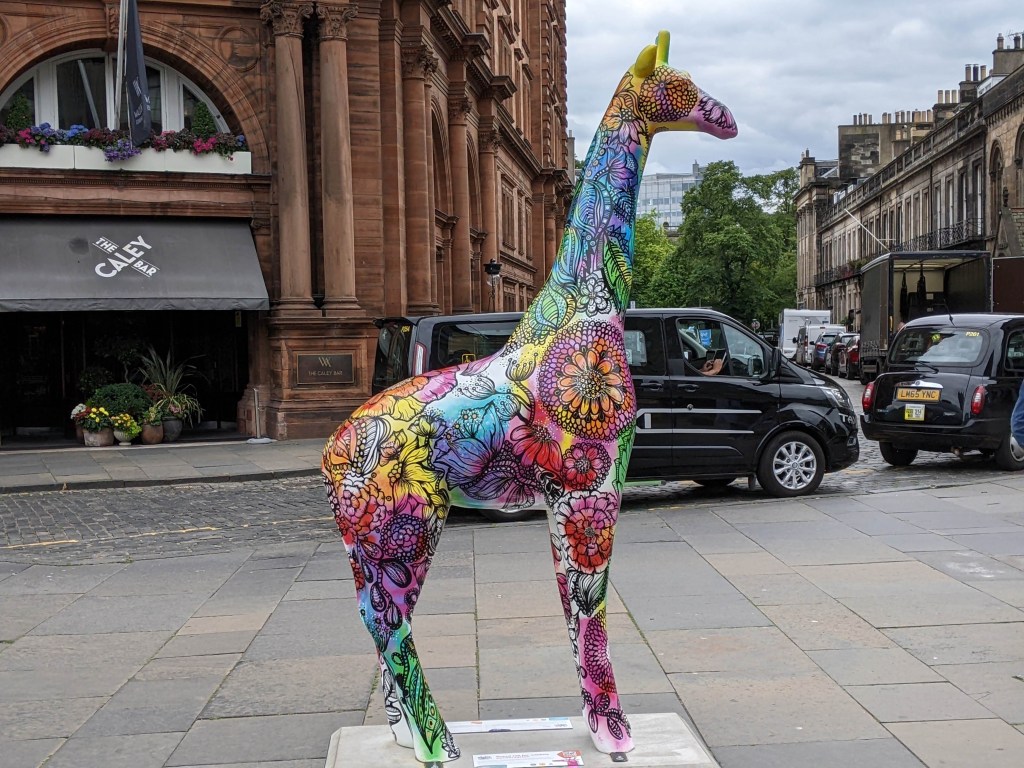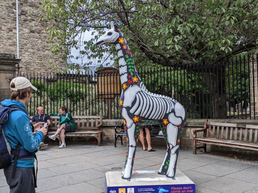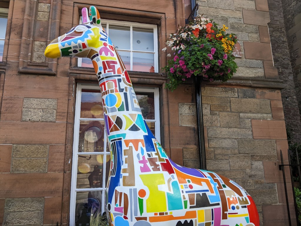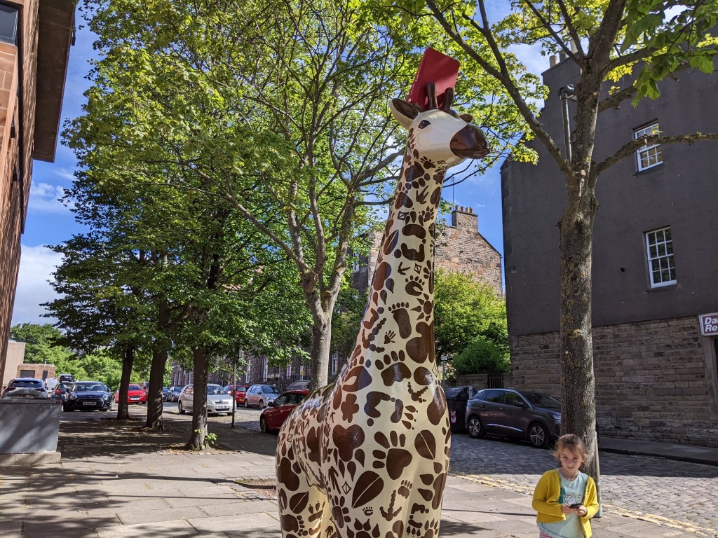 As we walked toward the city, I spotted a colorful giraffe, and stopped to grab a photo. A local mom explained that there were 70 uniquely painted giraffes all around Edinburgh, and if I found every one, I’d get a free ice cream! A nice person of Scotland, stopping to share with strangers. Here’s all I found today: