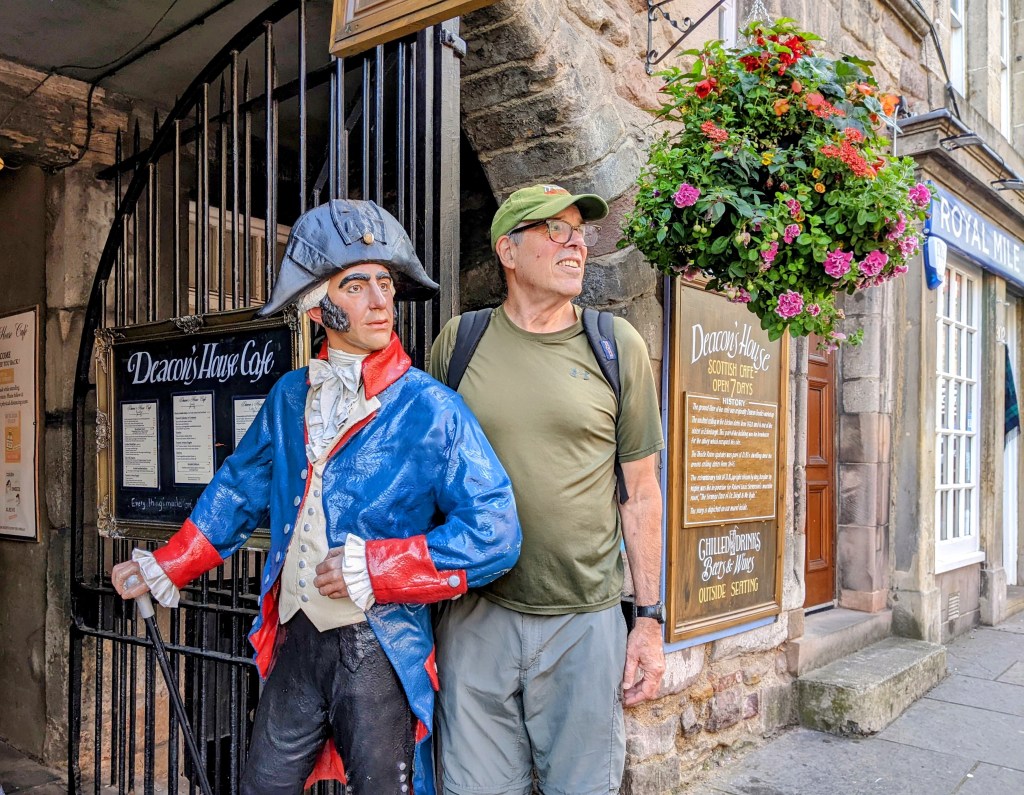 July 26 – Boy, did we sleep last night! Still a bit groggy this morning, but feeling human again. Today is a recovery day, with no itinerary planned. After a breakfast of oatmeal (Scots call it porridge and prefer it salted, not sweet), coffee and hot crossed buns, we’re feeling almost energetic! As the weather promises to be lovely – mid 60s with no precipitation – we put on our boots and set out to see some Edinburgh.