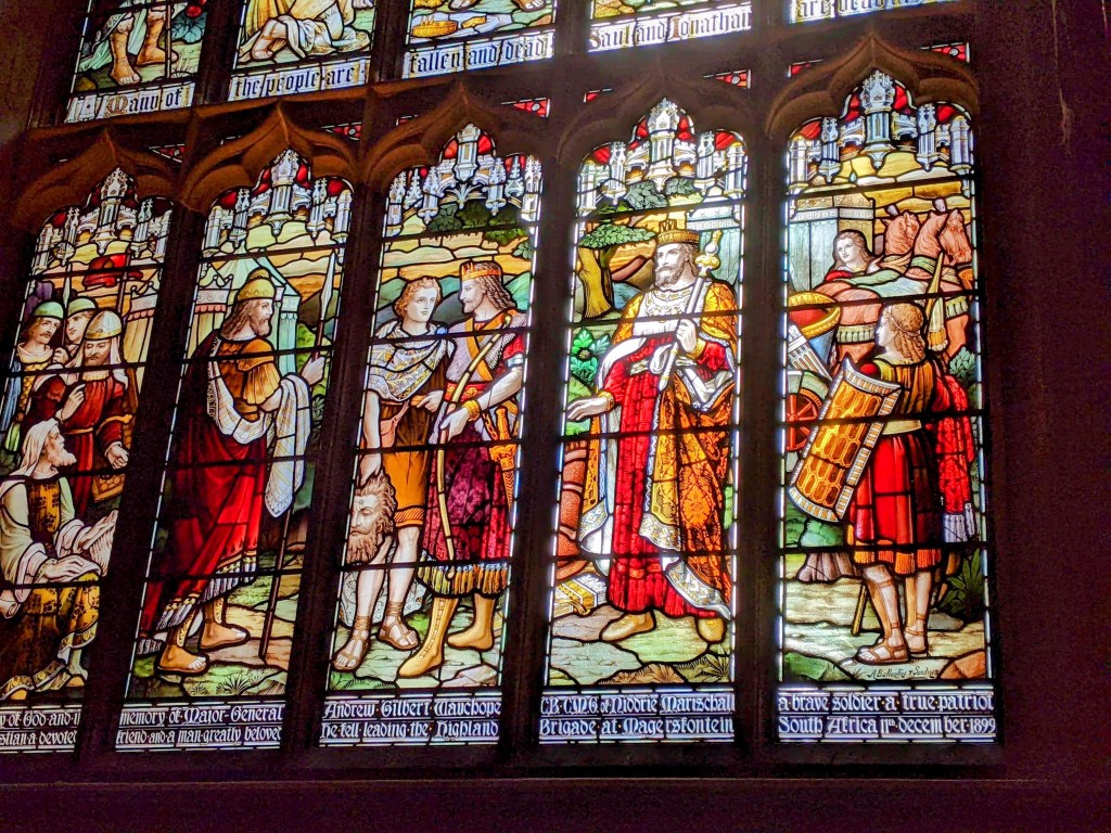 The 37 acre cemetery behind the cathedral is called the Necropolis, containing the bodies of 50,000 Victorian souls, including a memorial to John Knox, founder of the Presbyterian church in the 1500s.