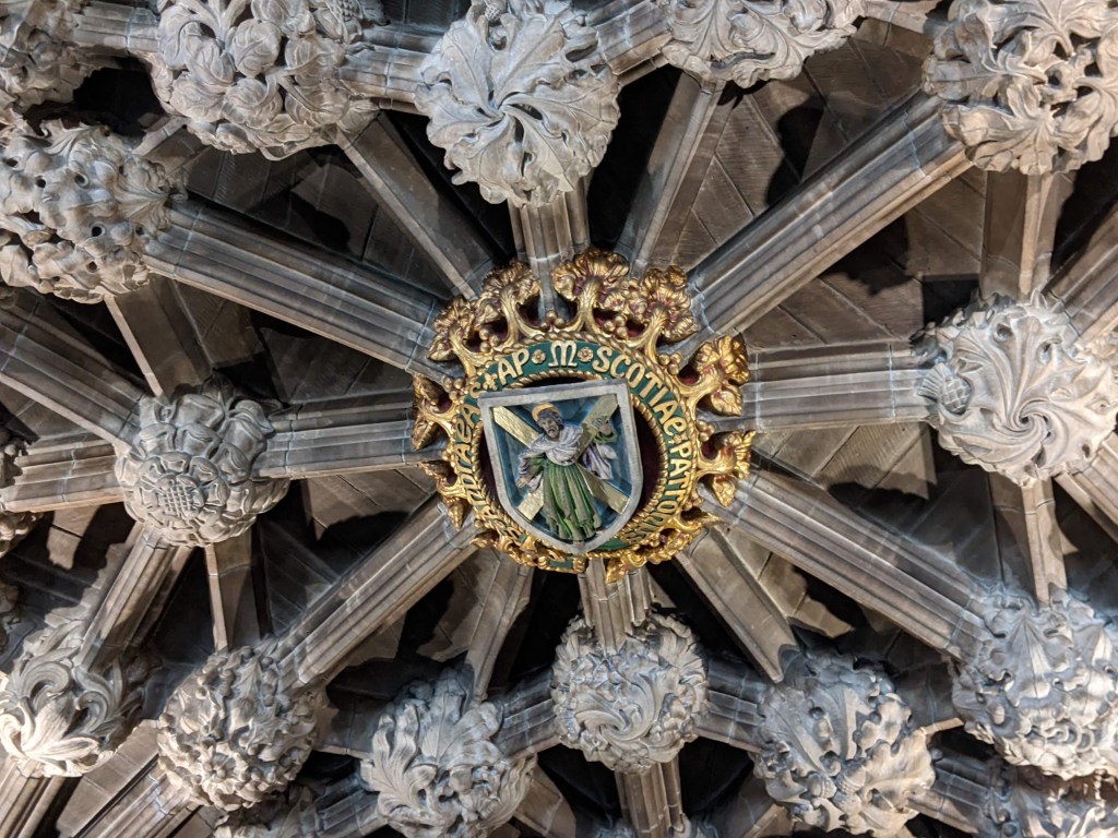 Entrance to St. Giles Cathedral Thistles on the ceiling of the Thistle Chapel