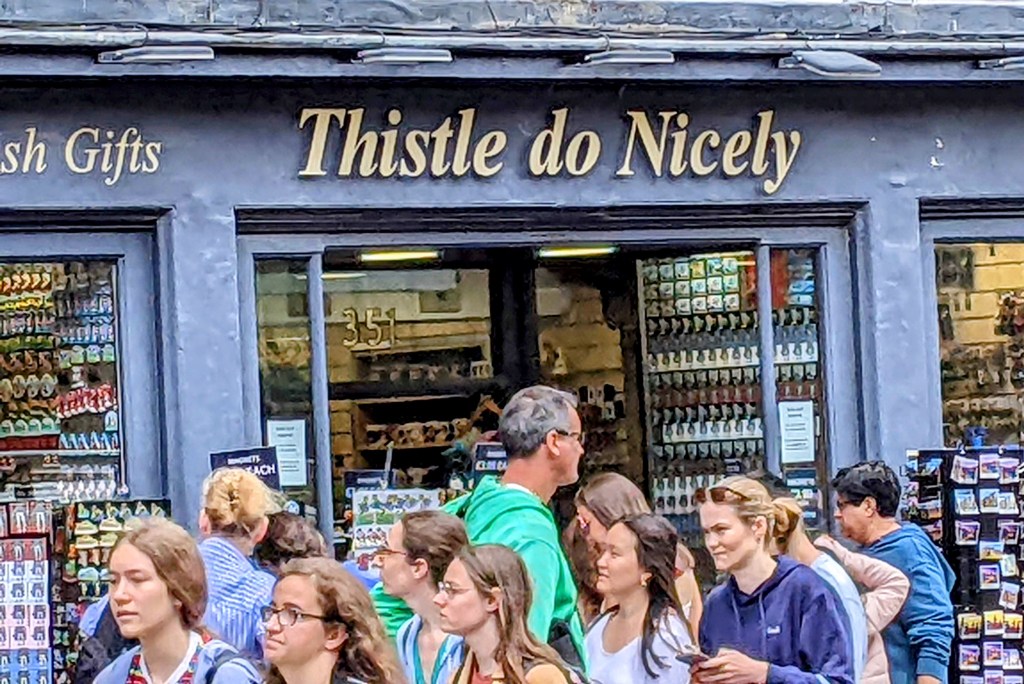 The national flower of Scotland is the thistle. This tourist shop captures the spirit: