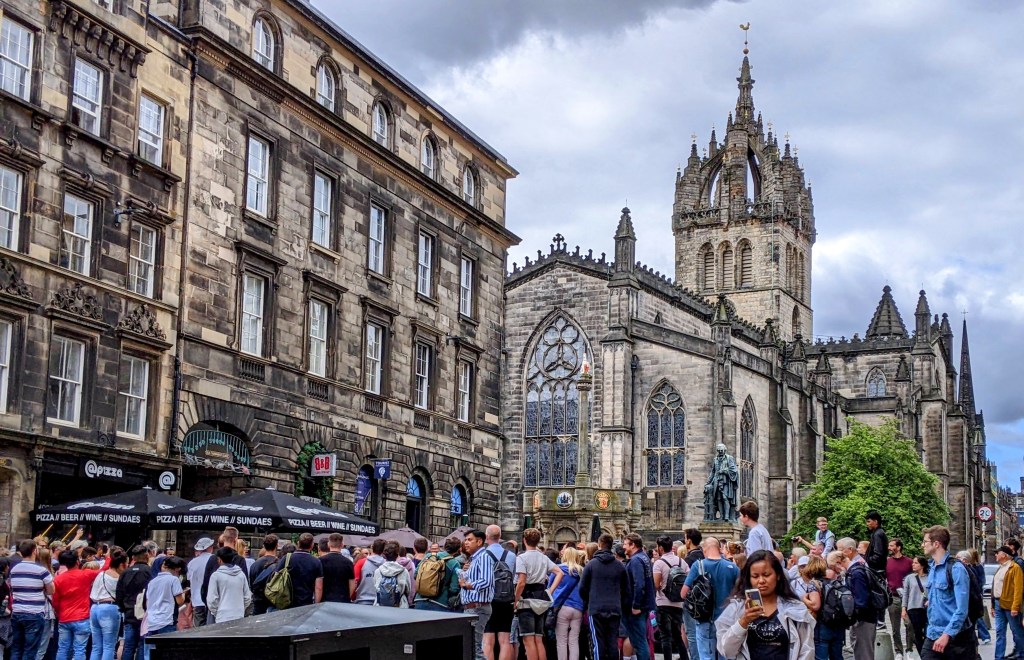 We and many others stood outside and gazed at Edinburgh Castle, but tickets for the entire week were sold out. It is built on an old volcano called Castle Rock, and served as a royal residence from the reign of King David in the 1100s to the 1600s. It is one of the most often attacked castles in the world. We’ll just have to imagine what the Scottish Crown Jewels inside must look like.