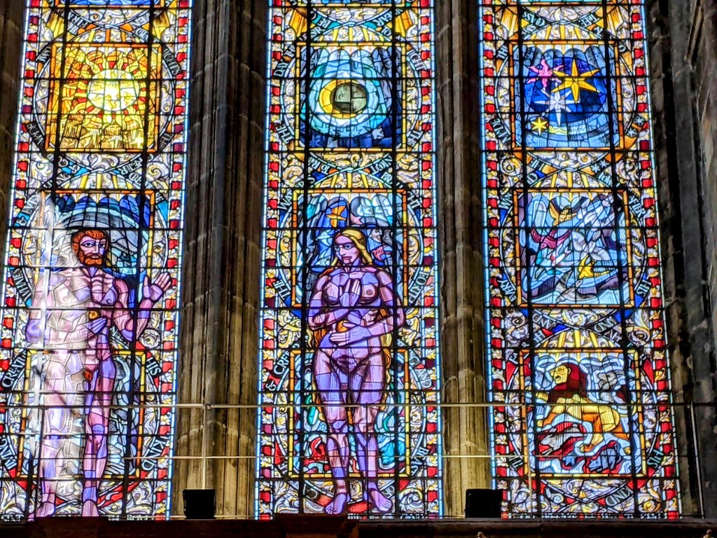 Adam and Eve stained glass
