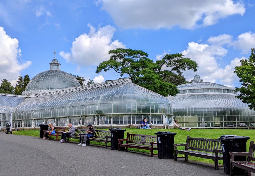 After lunch we walked across town to the Glasgow Botanic Garedens. Lots of Glaswegians strolling the walkways or lying in the sunshine – the weather got up to a balmy 72 degrees.