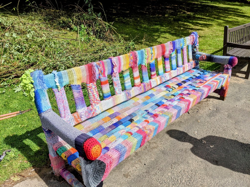 One of the parks benches was covered in colorful crochet. When we stopped to admire it, a local woman stopped to ask if we knew the story. She told us that after the death of a local artist, her daughters decorated her favorite bench as a memorial. Another nice person, stopping to share.