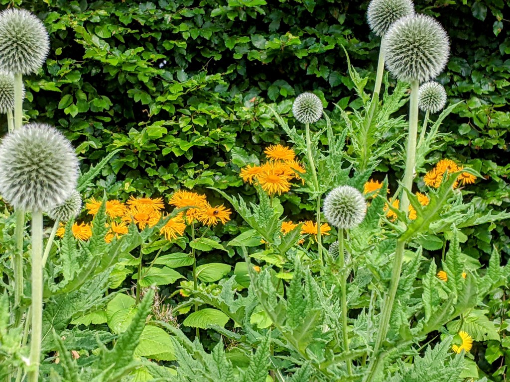 The main lawn was landscaped with identical plants in rows like soldiers. I kept thinking, ‘Eliese would not approve!’