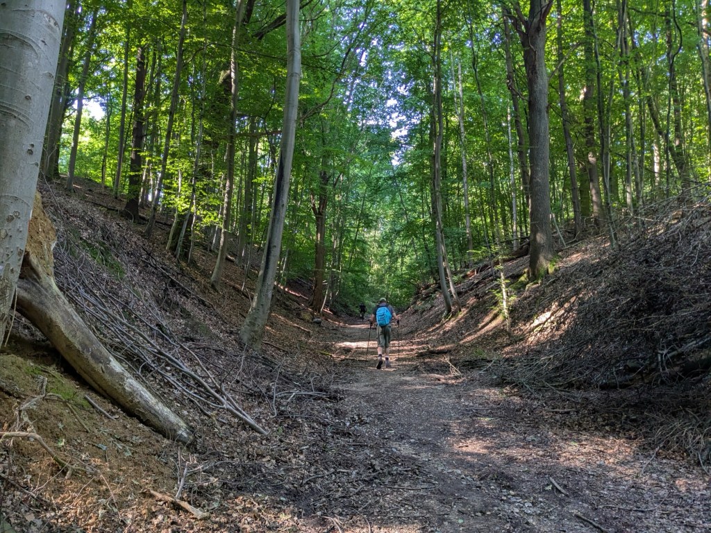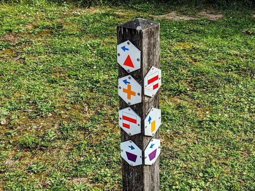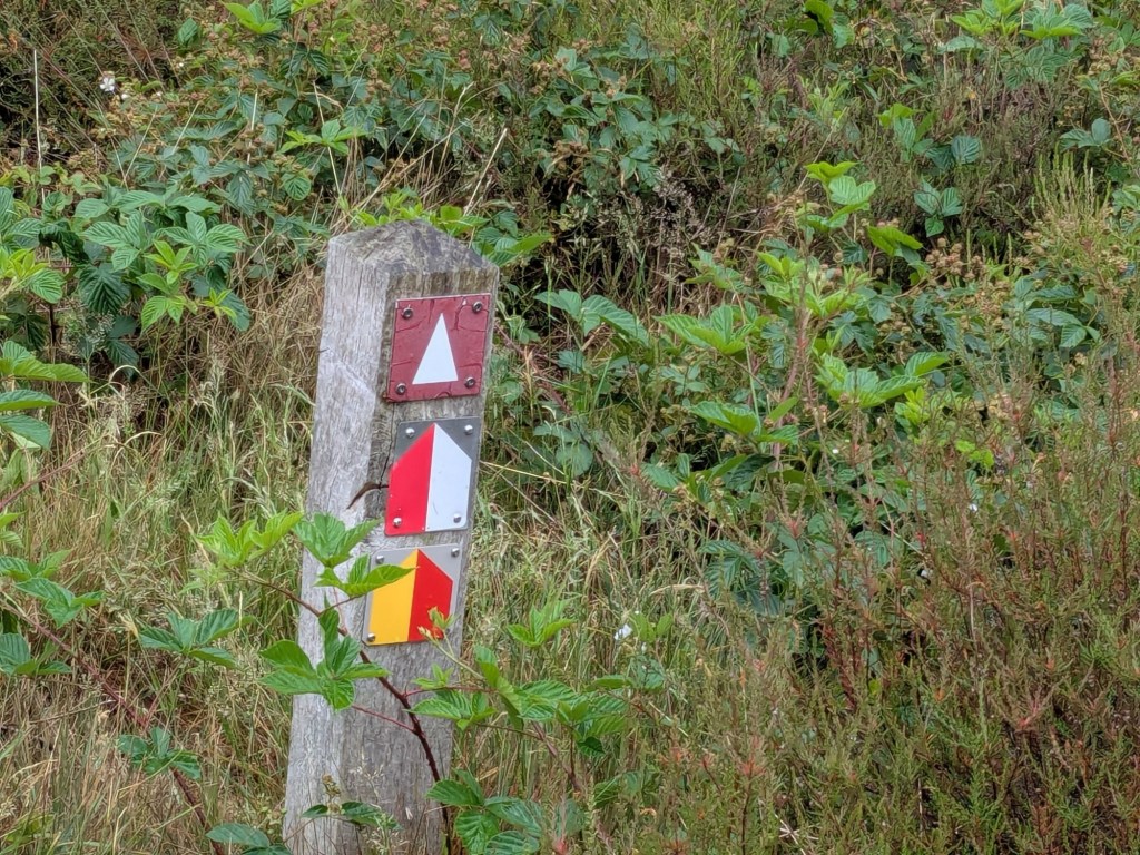 Before too long, we reached the summit, and looked around. No signs of the beginning or the end of anything. There were some trail markers, but the Pieterpad was not among them. What to do?