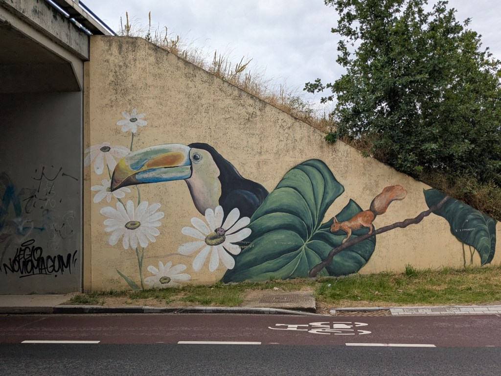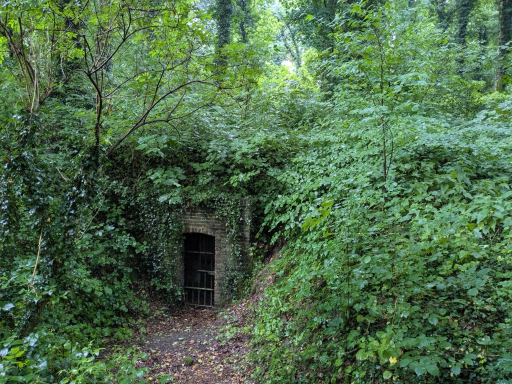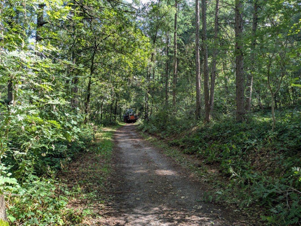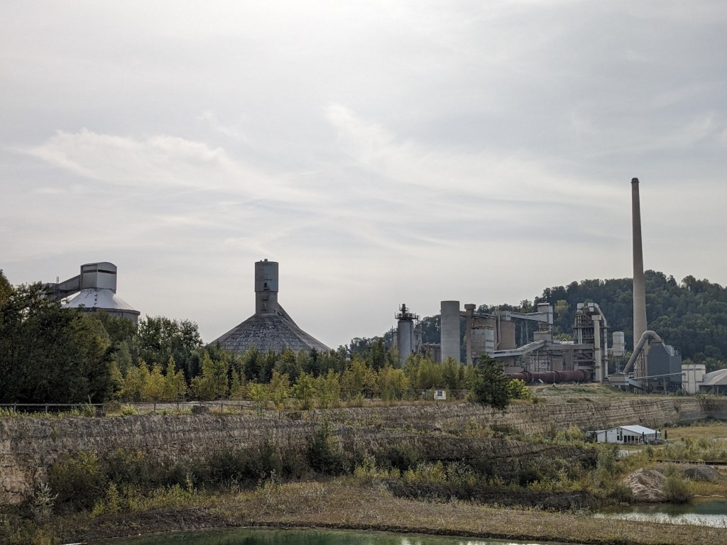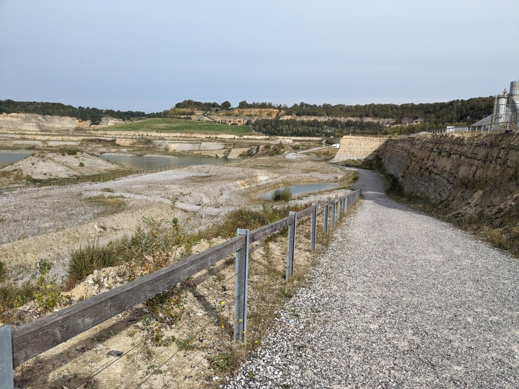 We trudged back down the hill, asking Google where we went wrong. No answers. At the foot of the hill was a café. We asked the proprietress, and she pointed across a very industrial-looking area. There was a path, so we followed it.