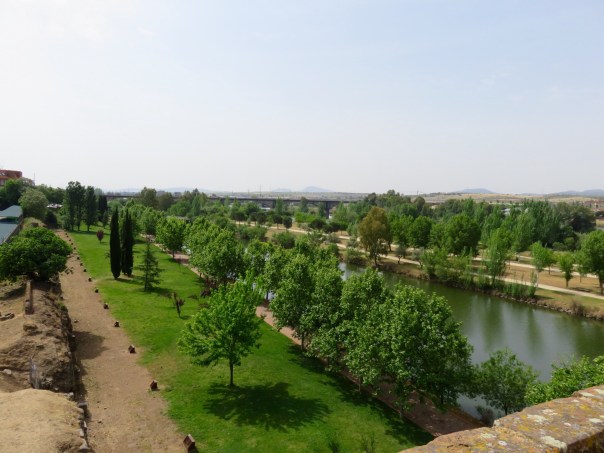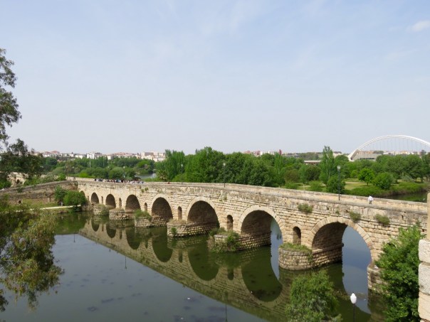 We crossed the Rio Guadiana, by walking over the Puente Romano (pictured above and below), an ancient Roman bridge still in daily use as a footbridge. Those Romans knew how to build stuff that lasts. And now we are in Mérida (a shortening of the name Augusta Emerita, a city for the veterans of the army of Caesar Augustus) where we will take a few days off to see the best examples of Roman ruins in Spain. Stay tuned!