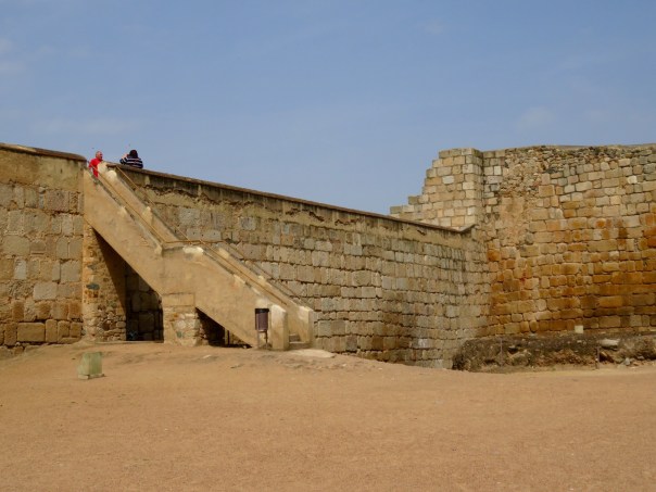 We walked up the battlement wall to look at the river below.