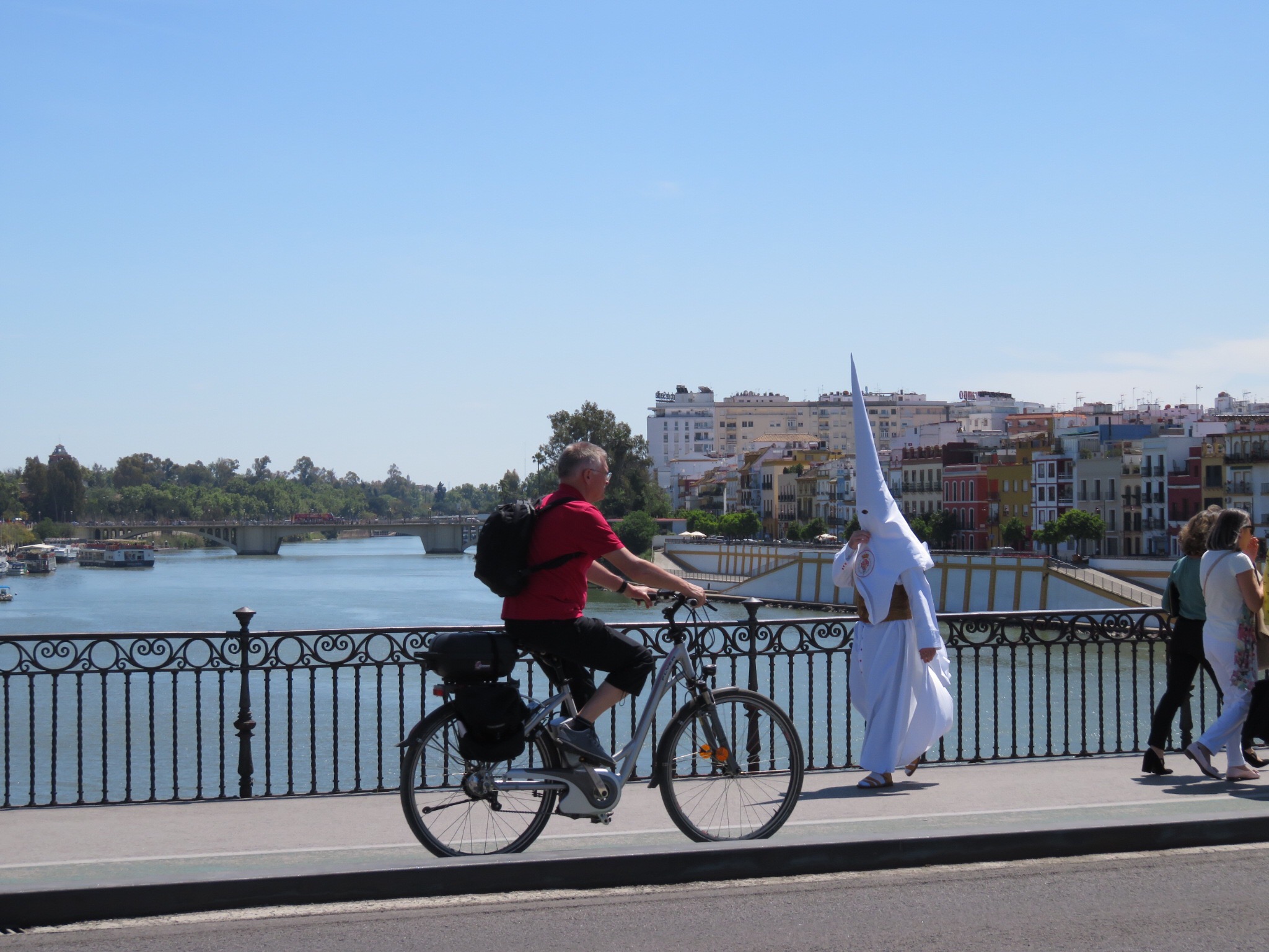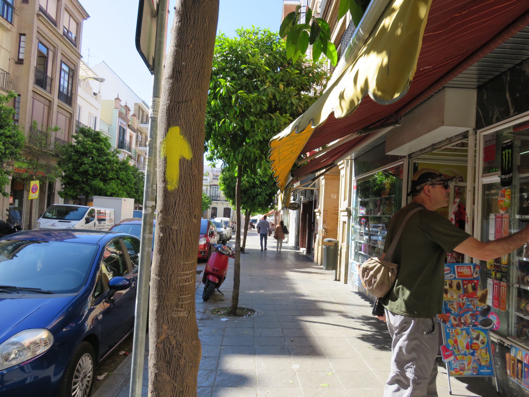 Apr 11 – This morning we left our little home in Triana, following the yellow arrows out of Sevilla, to start our 621 mile walk to Campostela de Santiago. If we make it (operative word is IF), this will be our longest Camino so far. Today’s segment is 13.7 miles.