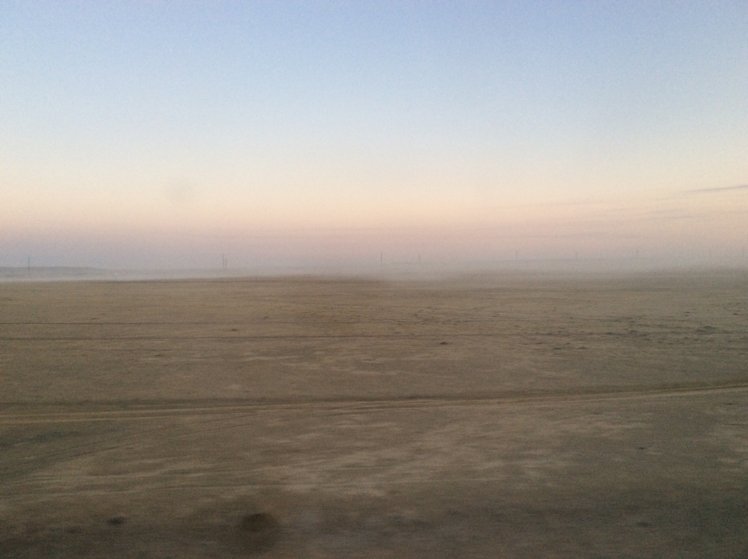 These were the views we had today. Flat desert: