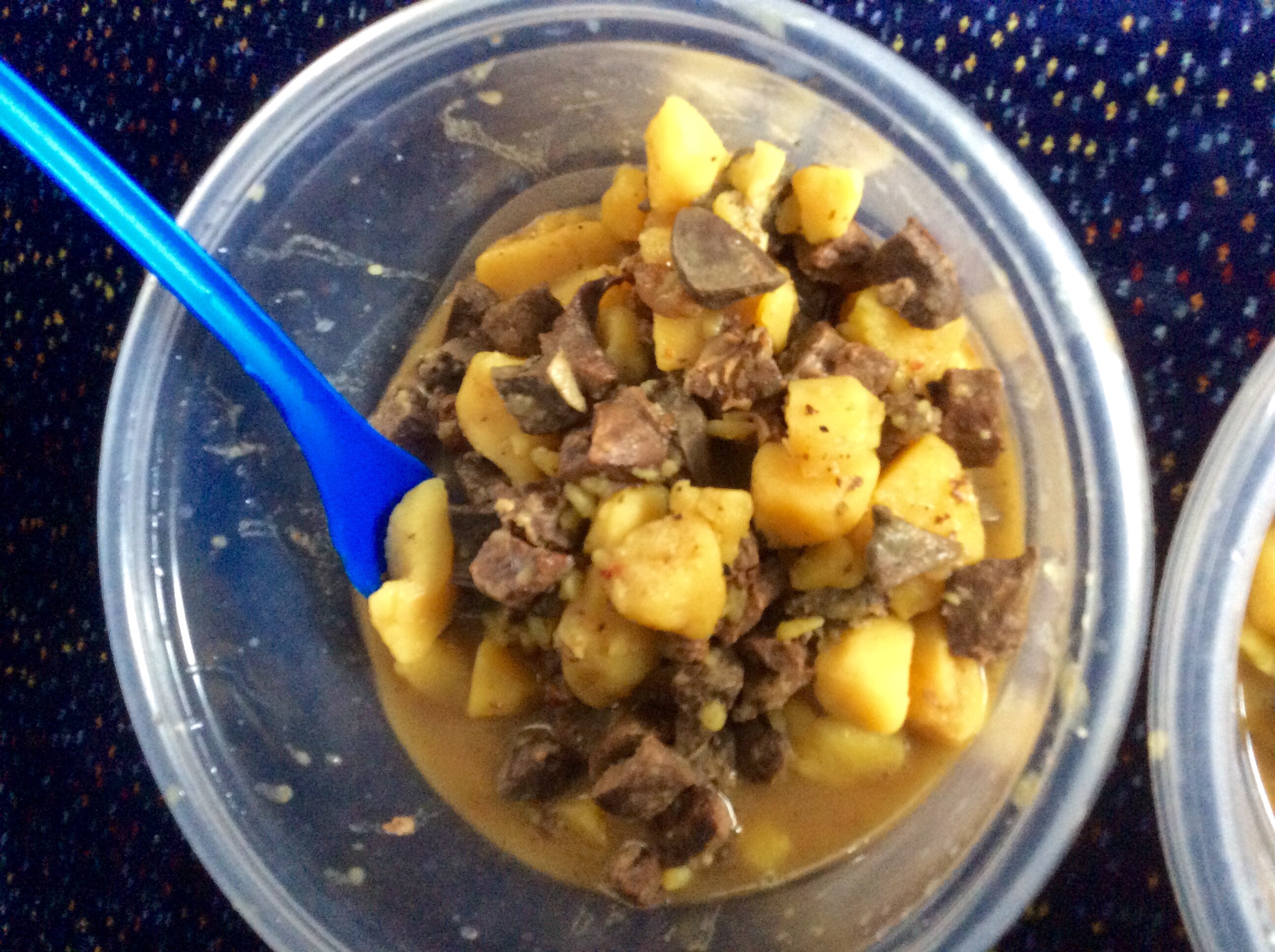 Today Jim jumped off the train at lunchtime, and came back with a plastic bag of hot stew – potatoes and what is probably horse meat – definitely not beef or lamb. They eat both horse and camel here…