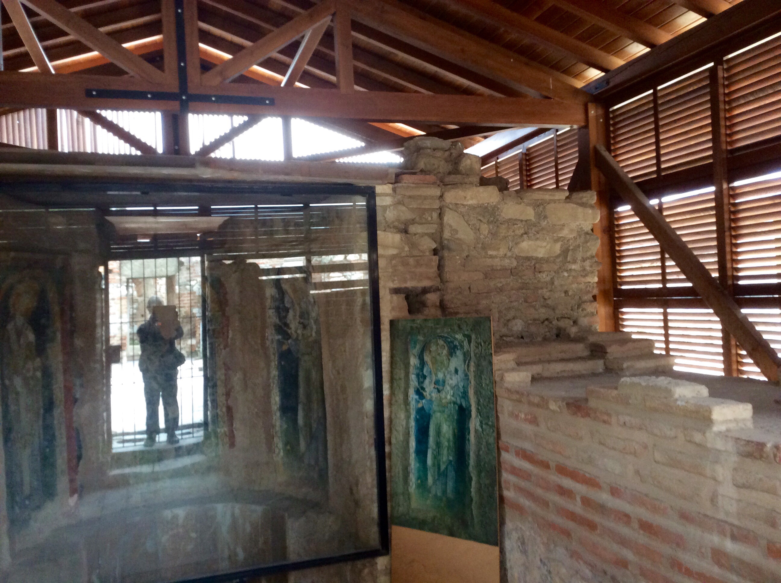 Here’s a funny thing. At the entrance to the museum is a ticket booth and a sophisticated electronic turnstile. We stand a moment, trying to puzzle out the price of admission, which seems to be 50 lira ($22) plus some sort of museum card. We are mentally figuring what the total cost might be, and that this is the most expensive museum we’ve encountered, when the person in the ticket booth smiles and says the entrance is free. Free? Yes, and hands us two fancy tickets, which we scan to get through the turnstile. Most curious!