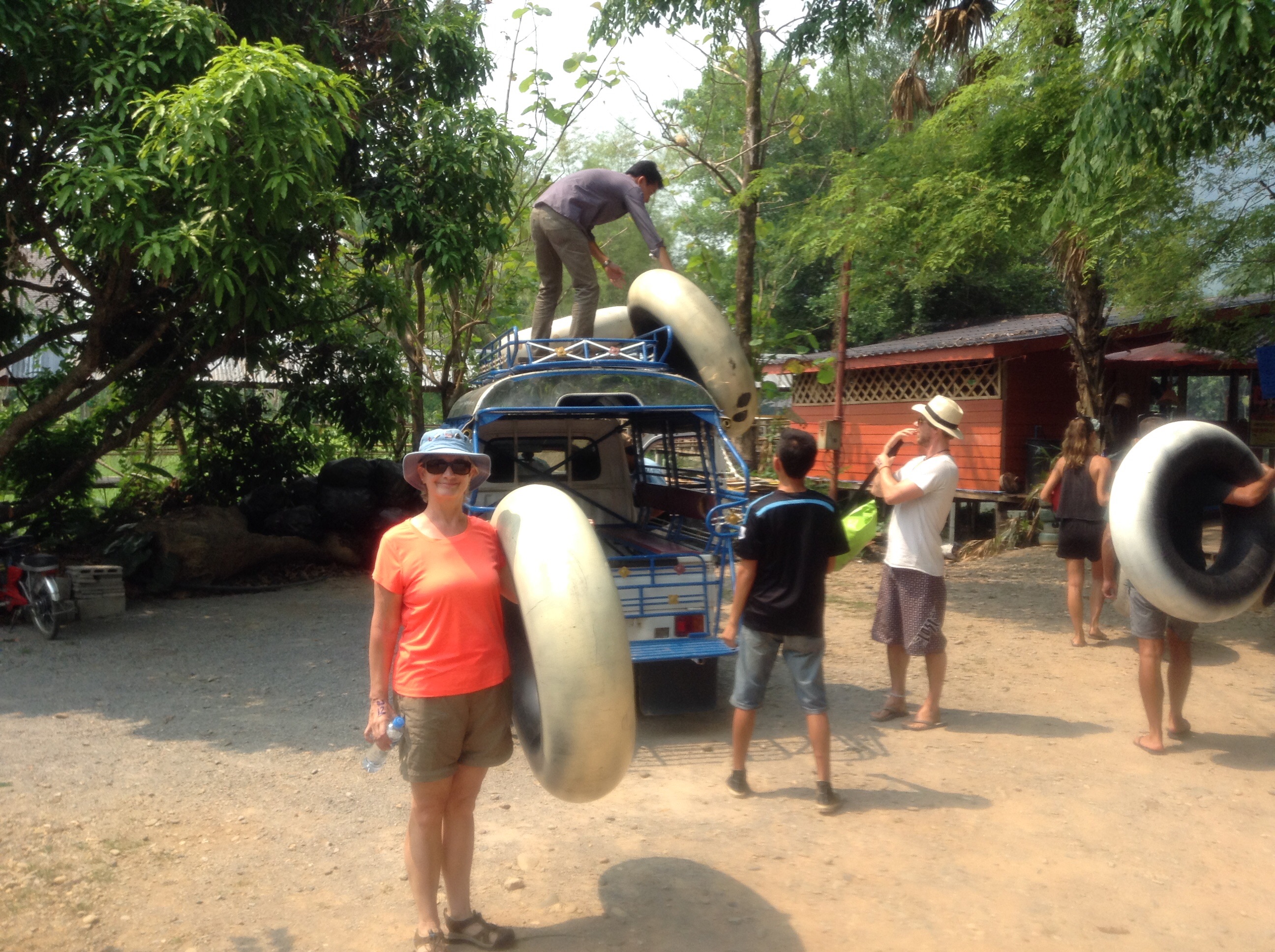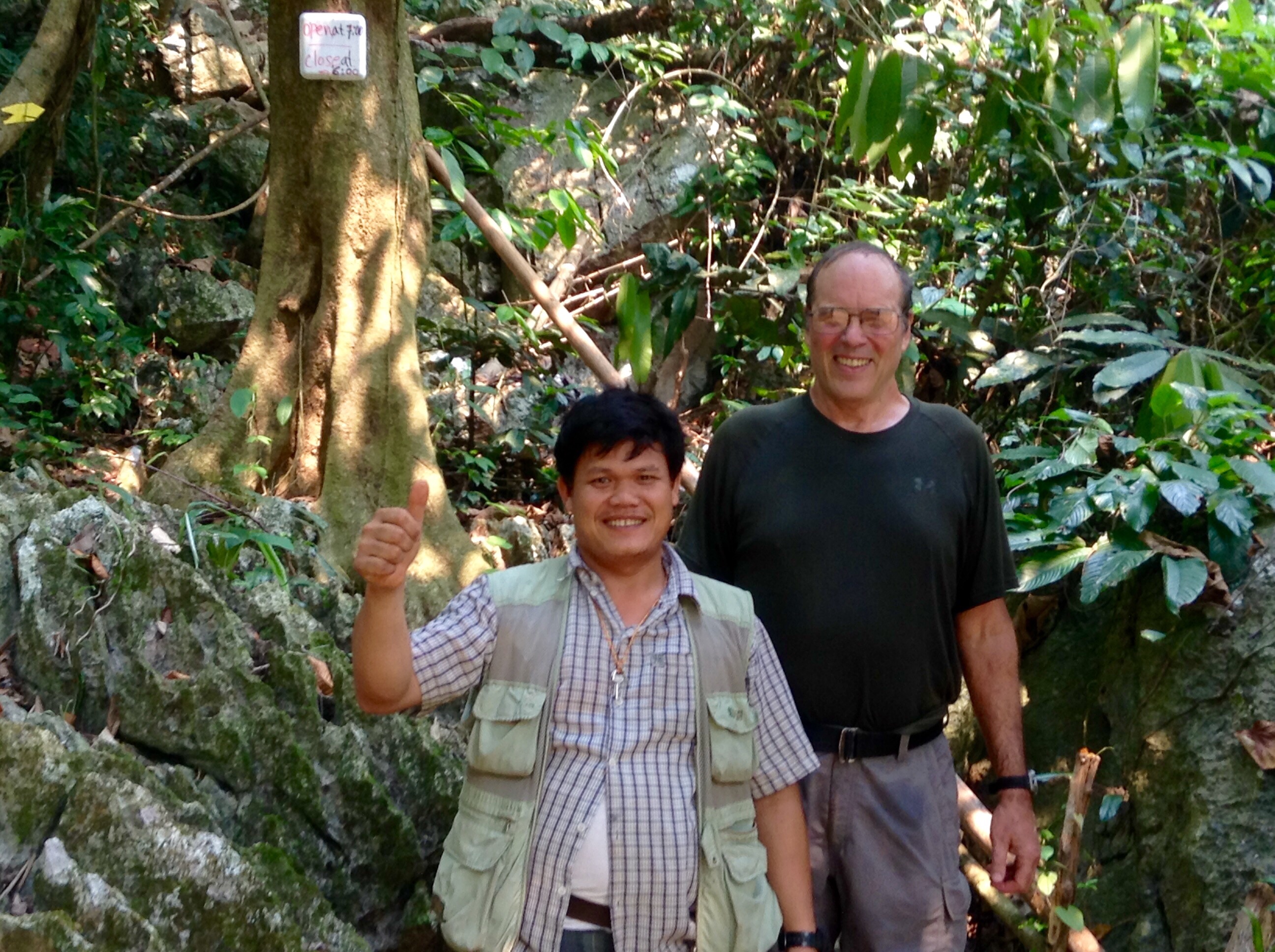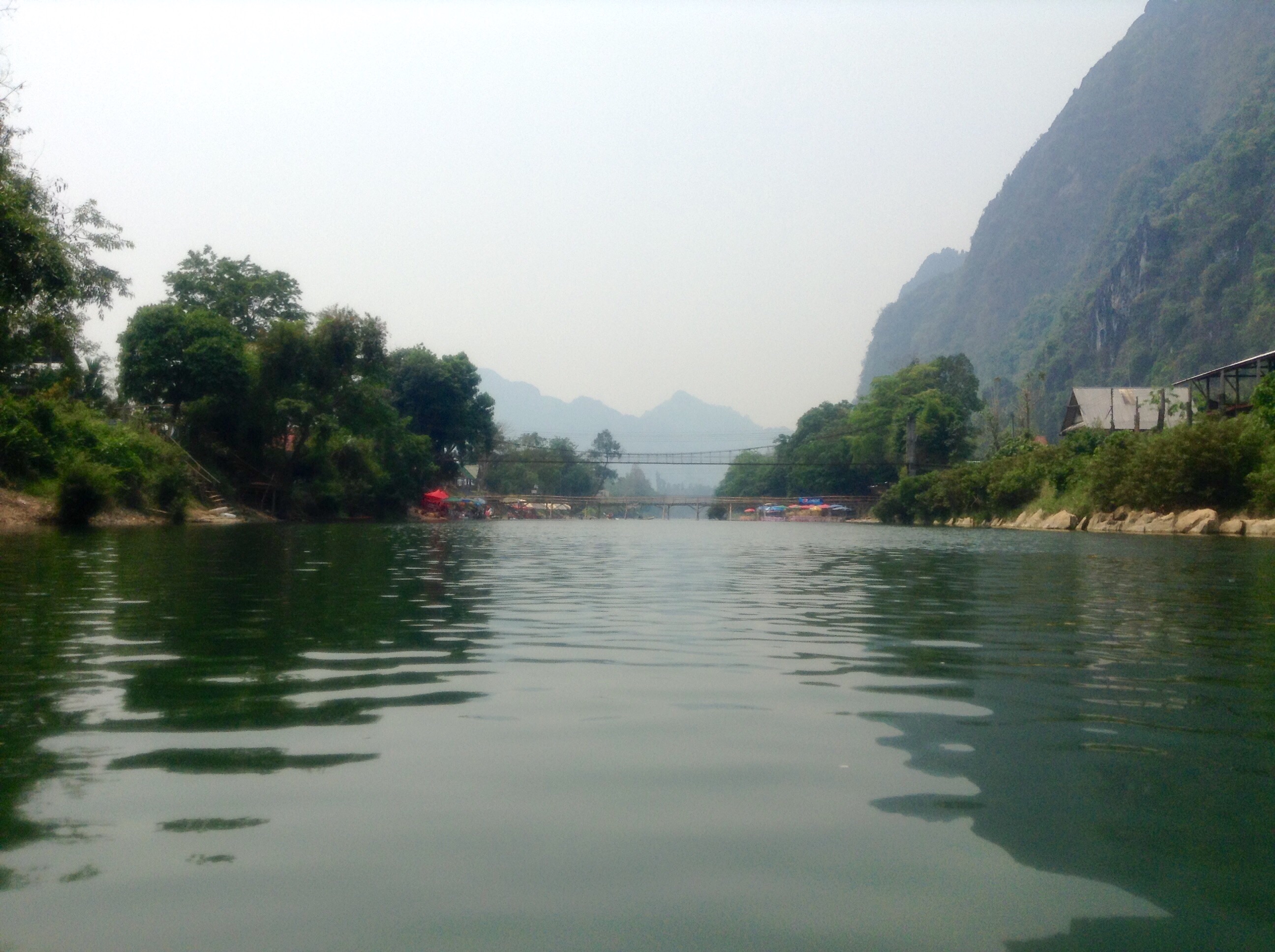 4/7 – Time to brush the Vang Vieng dust off our sandals and get back on the bus. We had a nice conversation with our hotel host this morning, a businessman from Singapore who saw potential in this town and decided to build a hotel and spa for his own retirement here. He was glad when the partying was shut down, as the kids trashed up the town and didn’t spend money except for drinks. He said that a lot of the hotel/hostels that went out of business were very low end, and now real hotels are being built. The China to Thailand train line (no more Bus From Hell) has been promised to be completed within the next five years, and will bring a huge influx of affluent Chinese tourists here. He is sitting on an acorn and biding his time…