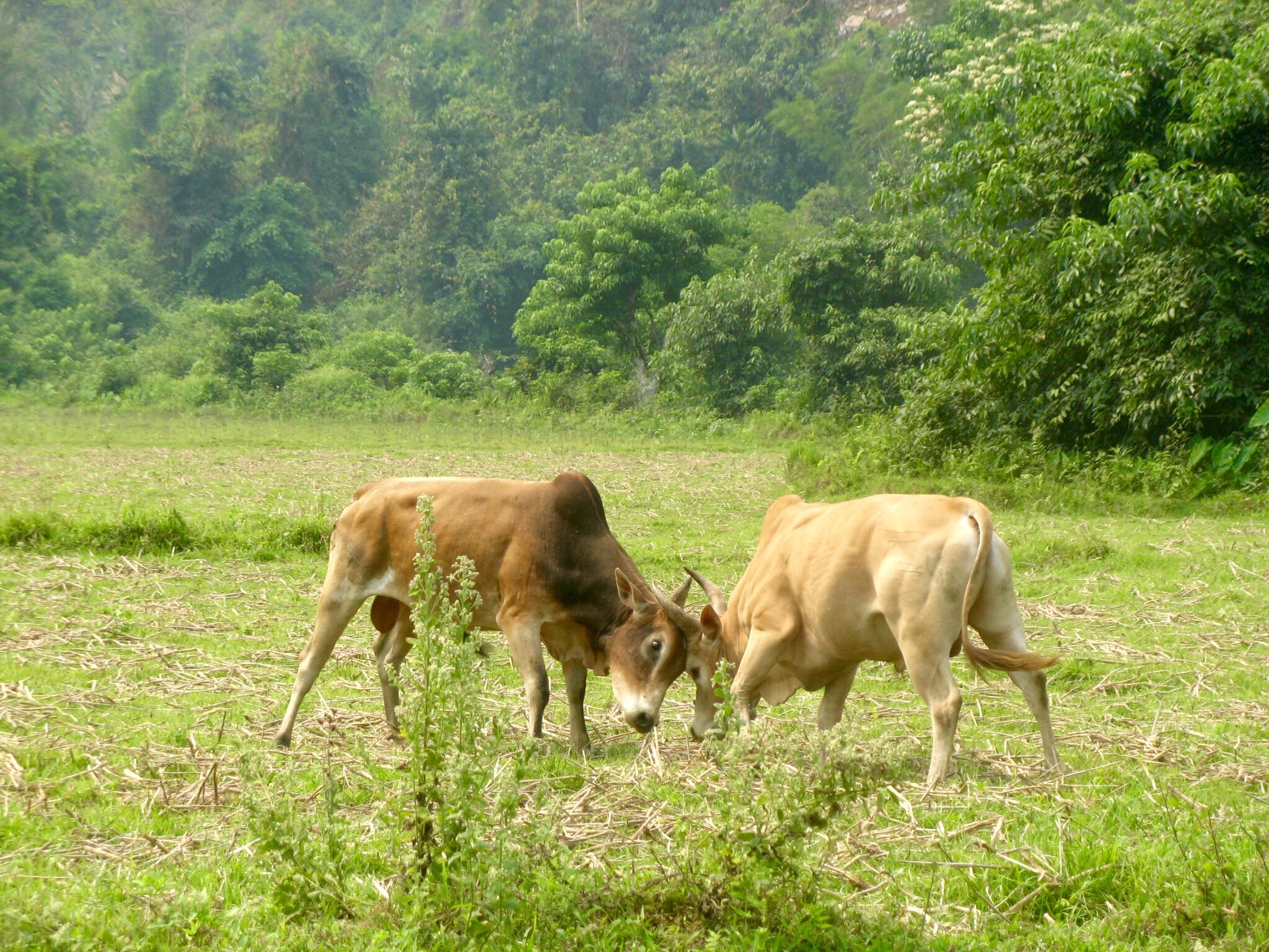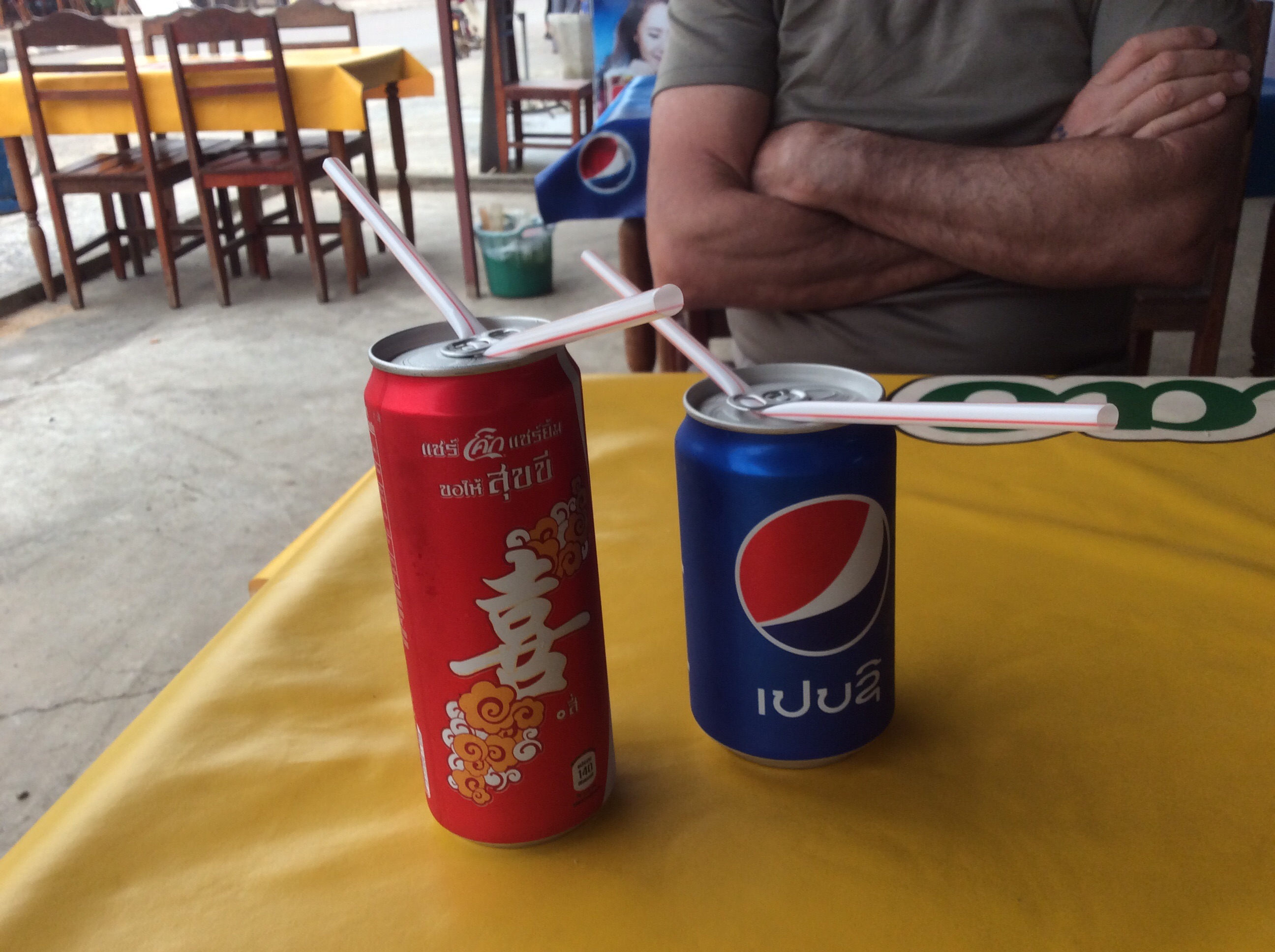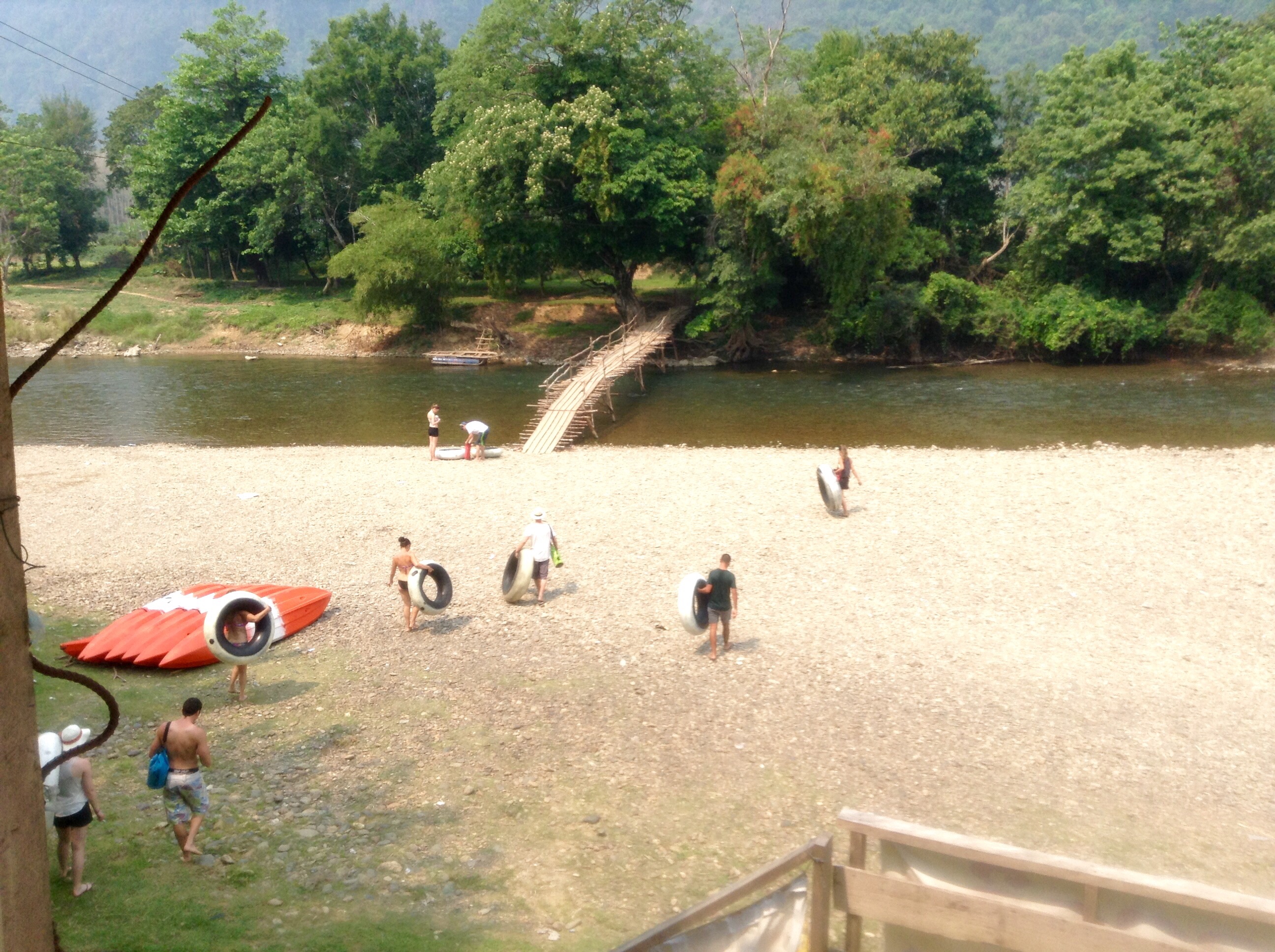 4/7 – Time to brush the Vang Vieng dust off our sandals and get back on the bus. We had a nice conversation with our hotel host this morning, a businessman from Singapore who saw potential in this town and decided to build a hotel and spa for his own retirement here. He was glad when the partying was shut down, as the kids trashed up the town and didn’t spend money except for drinks. He said that a lot of the hotel/hostels that went out of business were very low end, and now real hotels are being built. The China to Thailand train line (no more Bus From Hell) has been promised to be completed within the next five years, and will bring a huge influx of affluent Chinese tourists here. He is sitting on an acorn and biding his time…