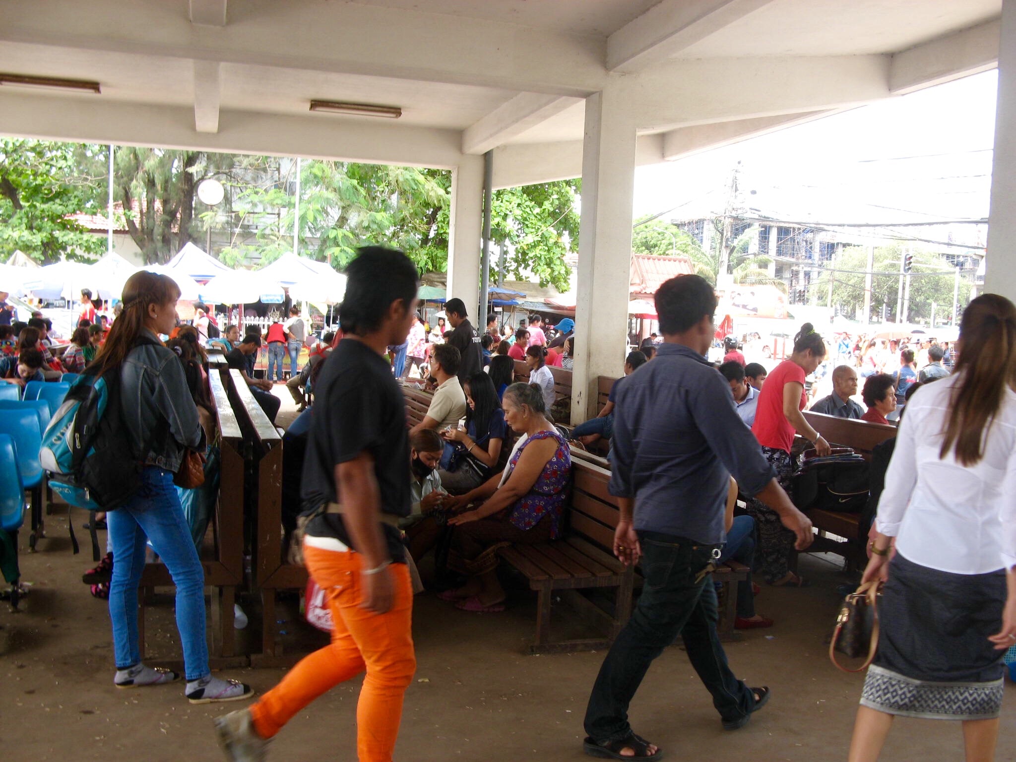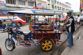 In less than two hours we arrived at the Udon Thani bus station. As most of us were going to the airport, Jim asked if we could all share a taxi, and the Vietnamese man took charge and bargained for a tuk-tuk that would take four of us and our bags for 30 baht each. New currency again – 1 baht is worth three cents, 100 baht about three dollars. As he spoke Thai, he was a much better bargainer than we would have been – I thought the driver’s original offer of 50 baht ($1.50) each was very reasonable for a five mile ride across town!