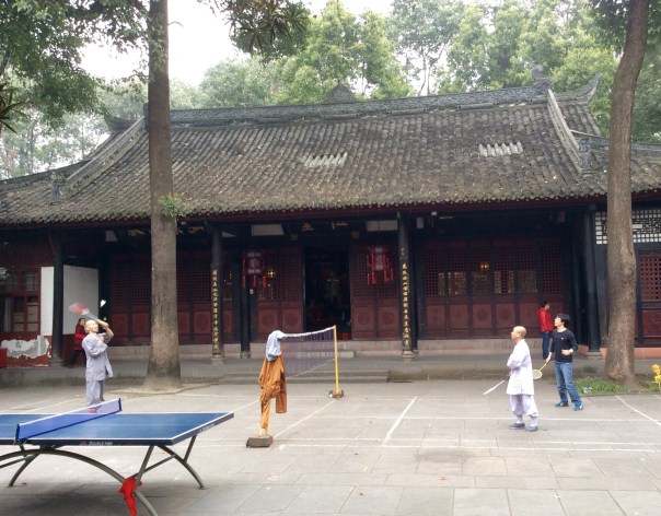We watched monks playing badminton and observed more people praying than we had in Xi’an.